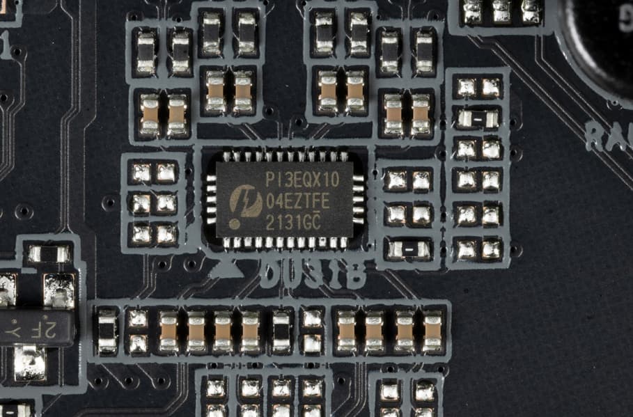 Плата относится к среднебюджетным решениям, поэтому нет ни внешнего тактового генератора, ни, как я уже выше отмечал, усилителей (ре-драйверов) сигналов PCIe 4.0/5.0.