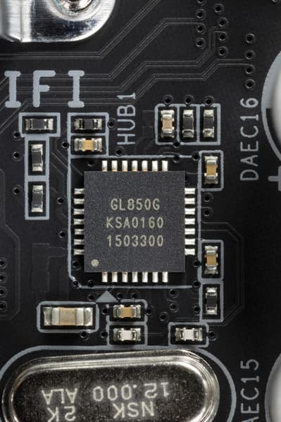 - Genesys Logic GL850G (4 USB 2.0 через 2 внутренних разъема) (1 линия USB 2.0);