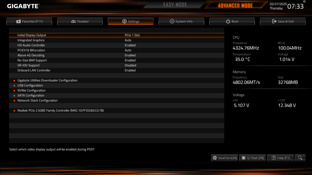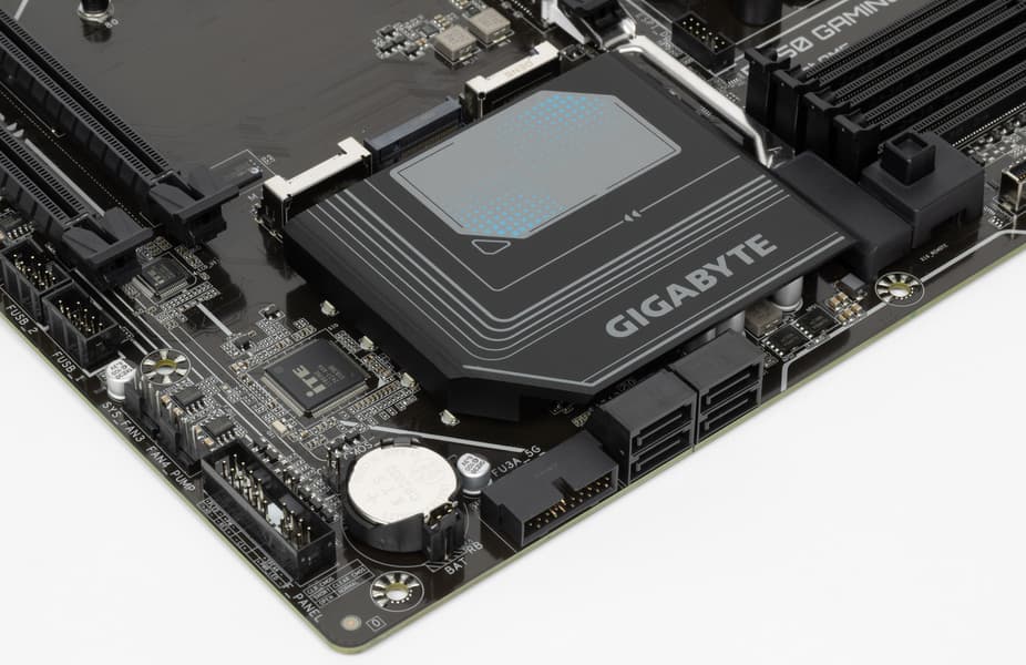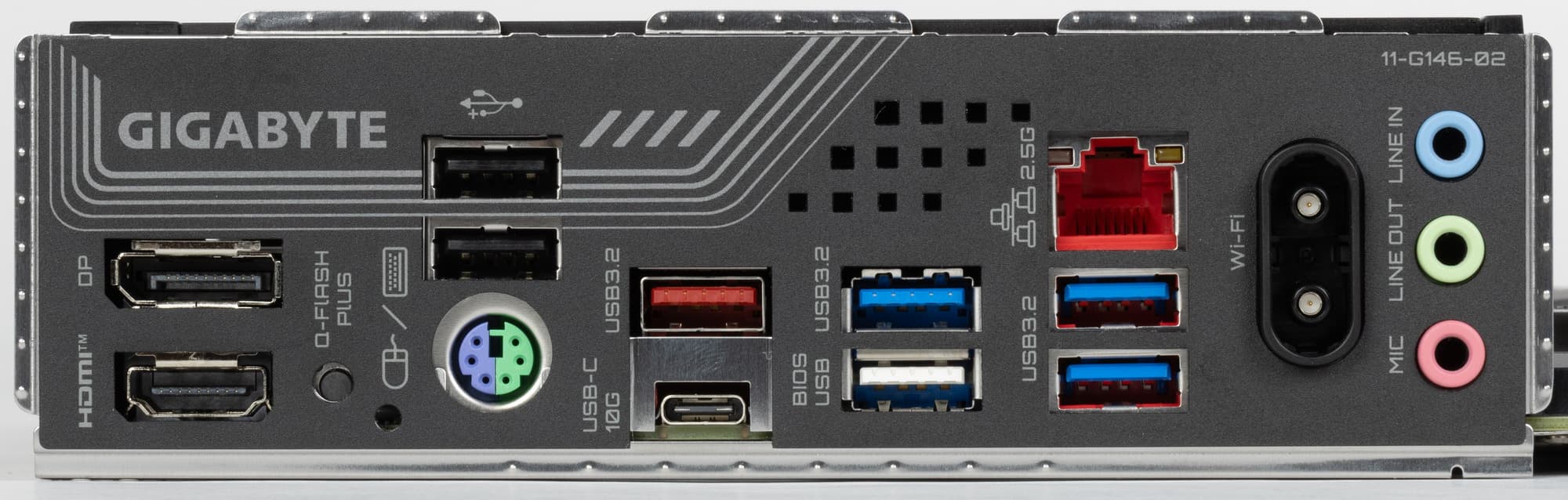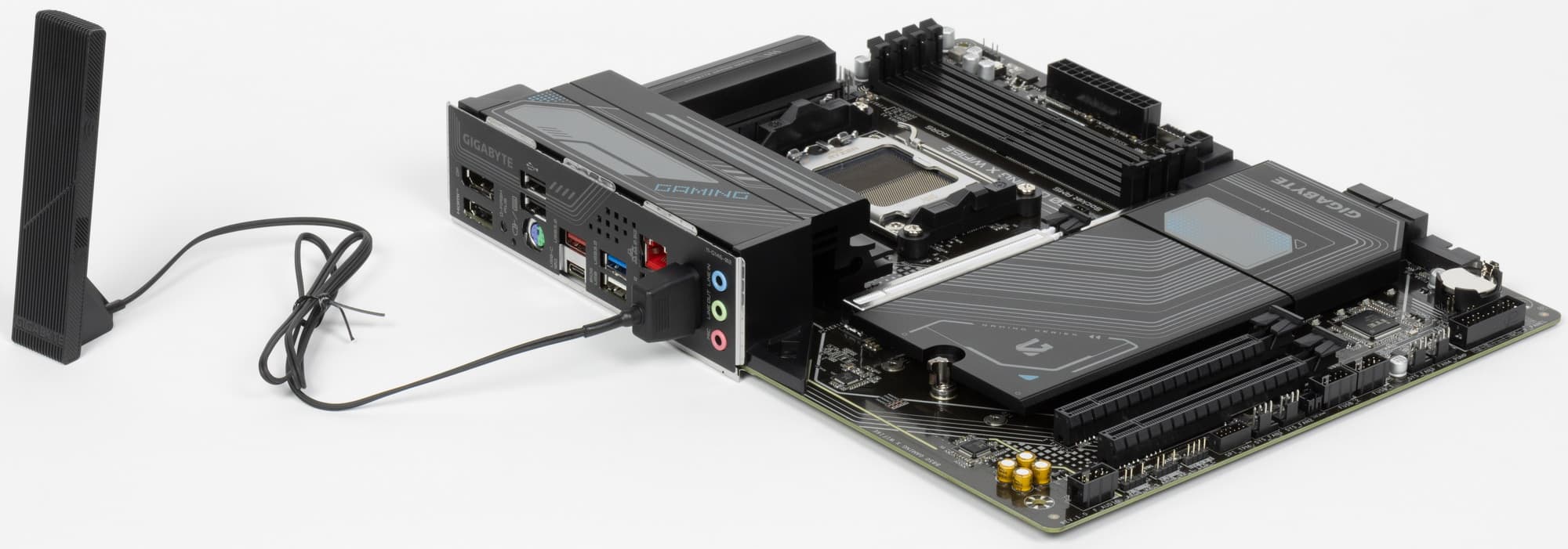 У Gigabyte B850 Gaming X WiFi6E имеется 15 портов USB разных видов, включая два быстрых порта USB 3.2 Gen2 и один USB 3.2 Gen2×2. Основной слот PCIe х16 получает от процессора 16 линий PCIe 5.0, возможно разделение линий через настройки в BIOS Setup (в случае установки накопителя в ближайший слот M.2). У платы имеется три слота M.2, один из которых поддерживает PCIe 5.0, остальные два — PCIe 4.0.