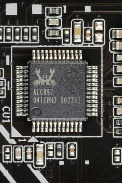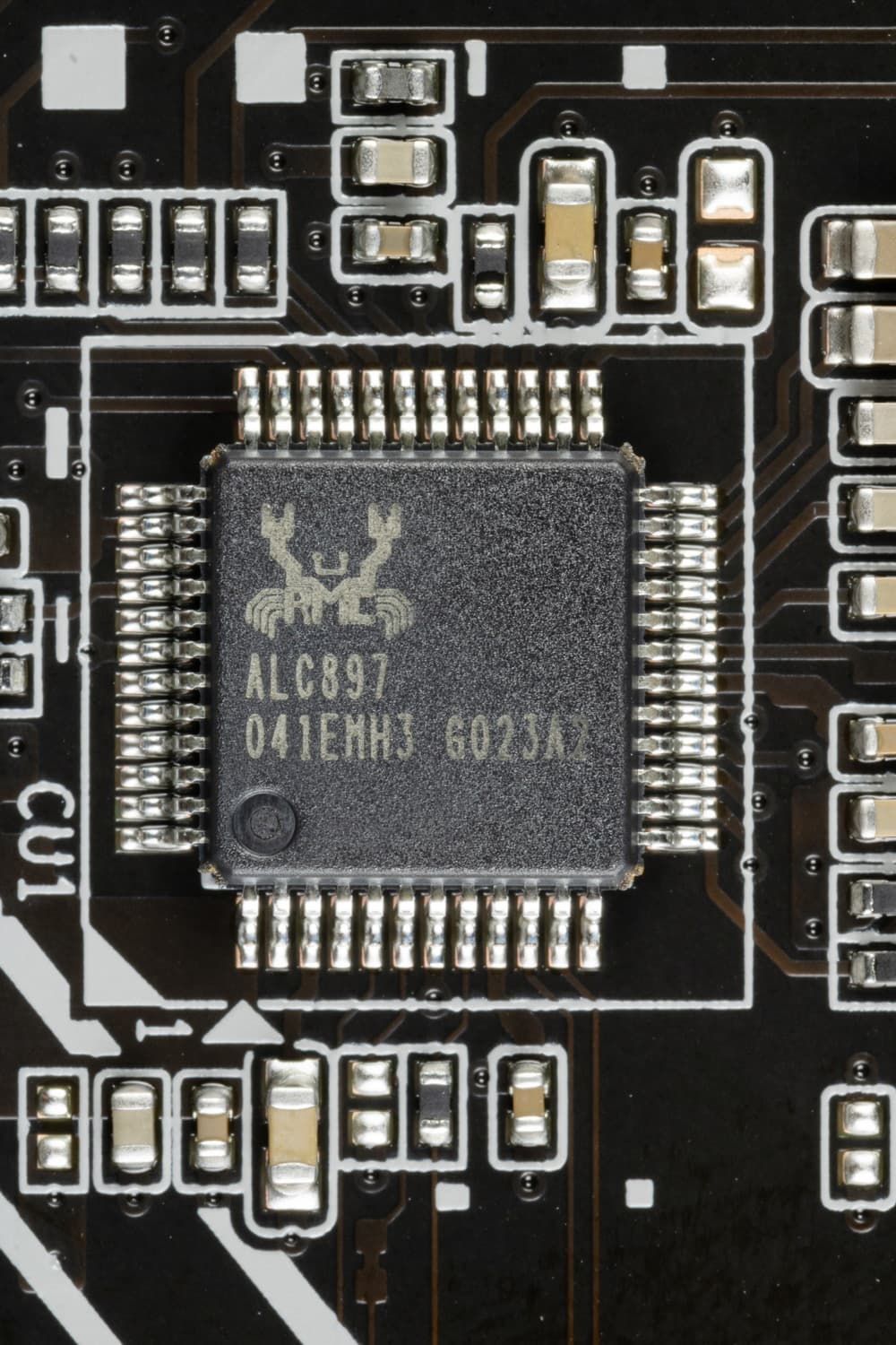 Мы знаем, что уже достаточно давно в большинстве современных материнских платах звуком заведовал аудиокодек Realtek ALC897. Он обеспечивает вывод звука по схемам до 7.1 с разрешением до 24 бит / 192 кГц. В данном случае схема 7.1 реализована с участием гнезд на корпусе (поэтому их следует подключить к матплате). S/PDIF на матплате нет.