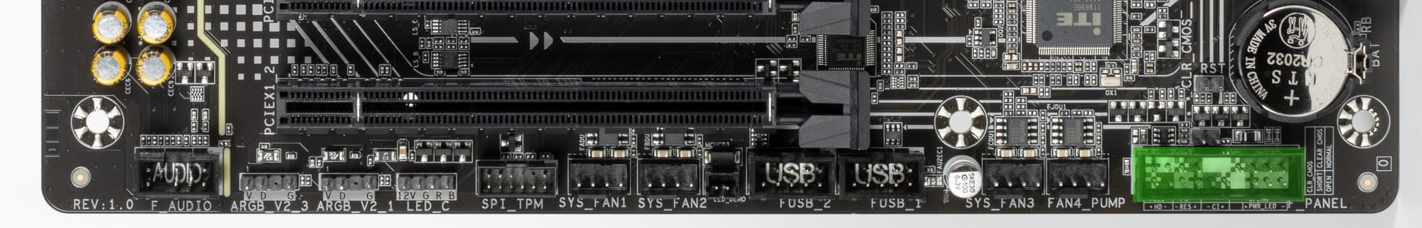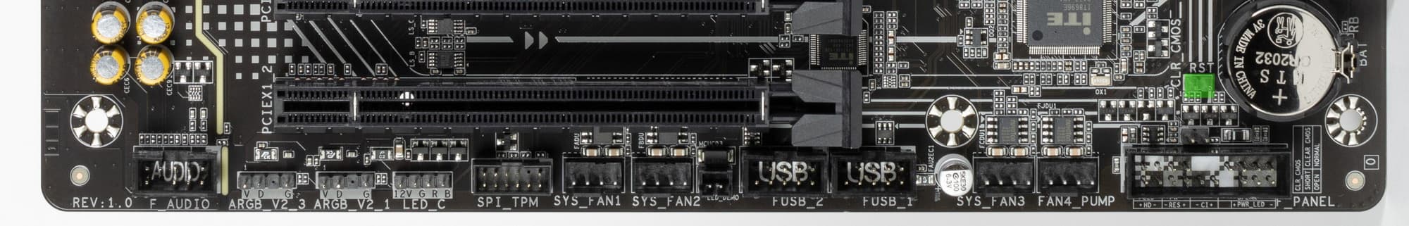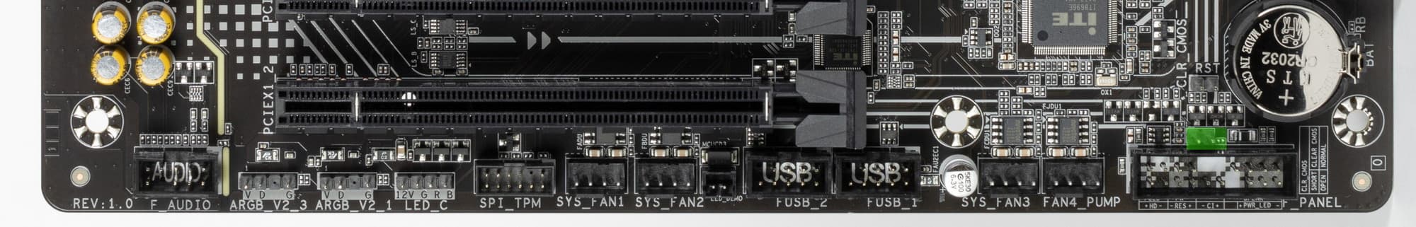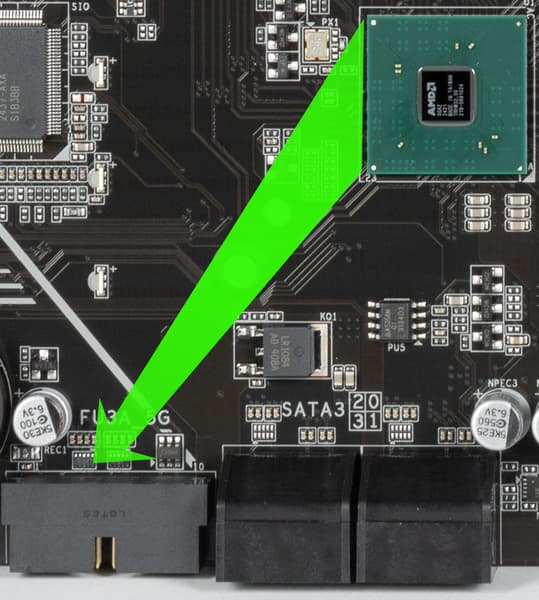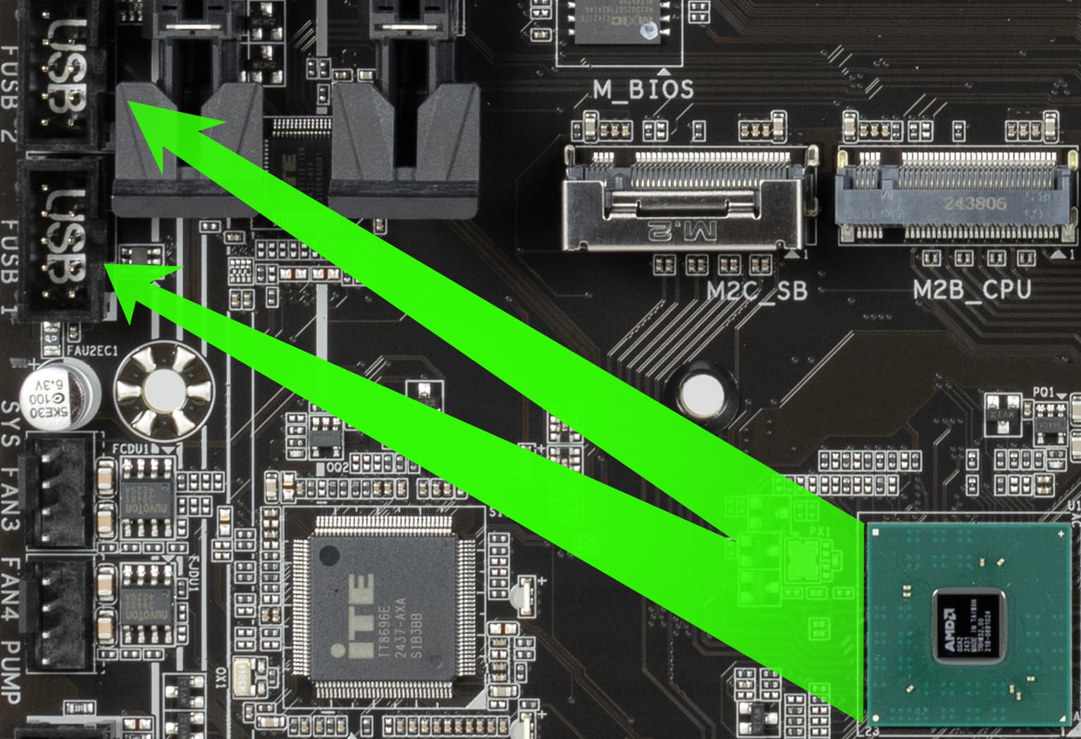 В процессорах Ryzen встроен контроллер High Definition Audio (HDA), связь с аудиокодеком идет путем эмуляции PCI шины. А также контроллер USB 2.0 Genesys Logic GL850G использует линию USB 2.0 от CPU (детали ниже в разделе USB портов).