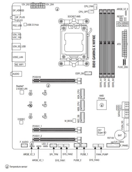 Форм-фактор ATX имеет размеры до 305×244 мм, а E-ATX — до 305×330 мм. Материнская плата Gigabyte B850 Gaming X WiFi6E имеет размеры 305×244 мм, поэтому выполнена в форм-факторе ATX, и на ней имеются 9 монтажных отверстий для установки в корпус.