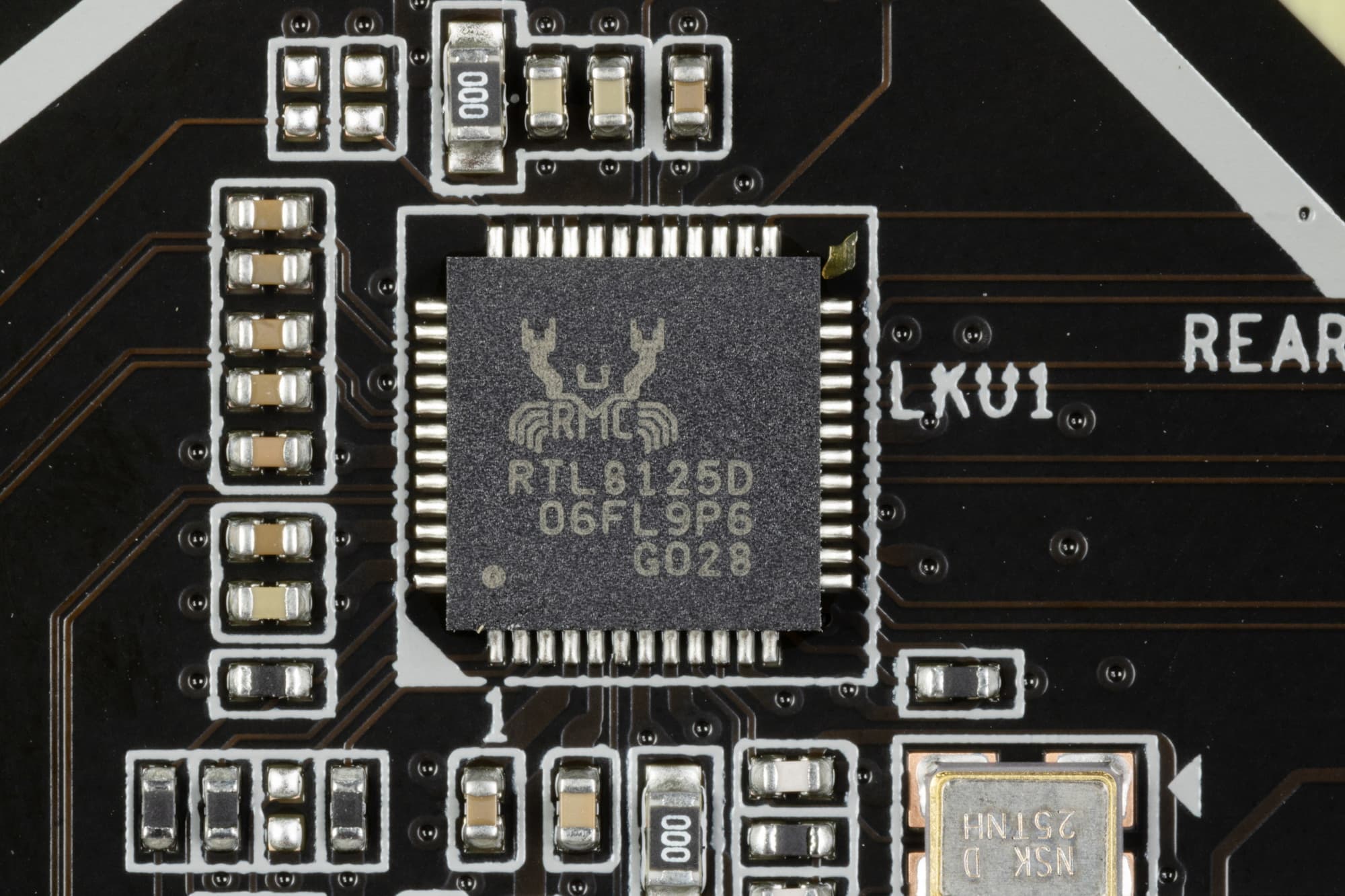 Материнская плата оснащена средствами связи хорошо. Имеется скоростной Ethernet-контроллер: Realtek RTL8125D, способный выдавать до 2,5 Гбит/с.