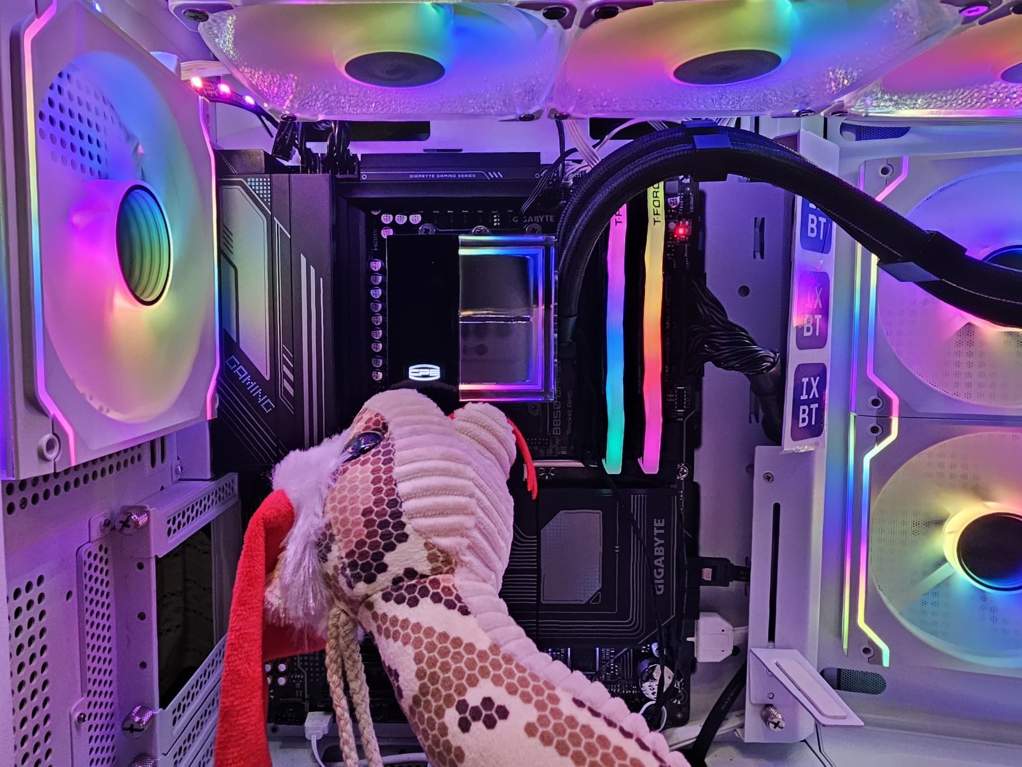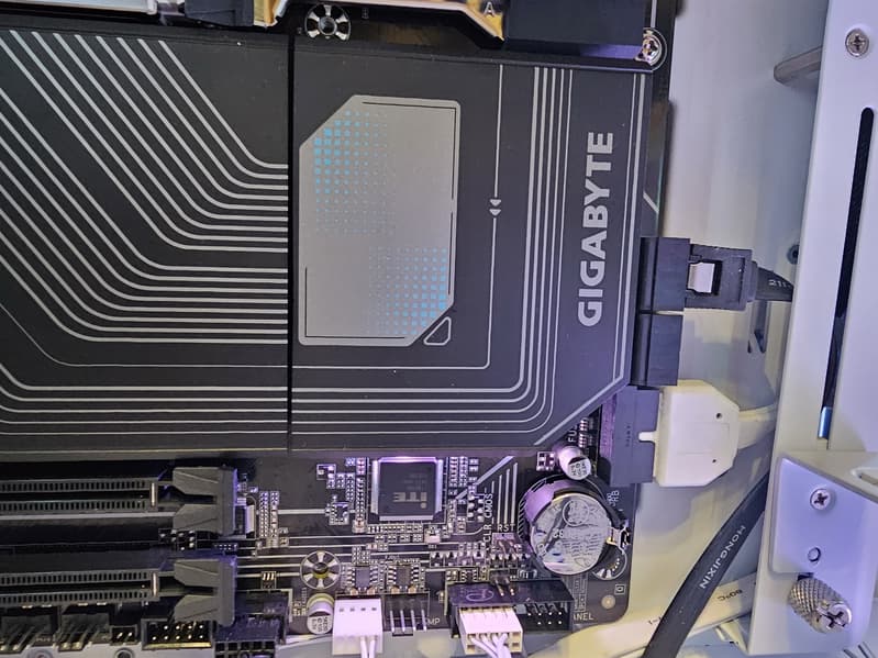 В арсенале этой модели также есть 4 порта SATA и 6 разъемов для вентиляторов. Система питания процессора относительно мощная. Плата имеет систему охлаждения для каждого потенциально греющегося элемента, включая накопители в слотах M.2. Сетевые возможности включают один проводной контроллер 2,5 Гбит/с и один беспроводной Wi-Fi 6E + Bluetooth 5.3. В числе плюсов платы можно упомянуть возможности для подключения дополнительных RGB-устройств.