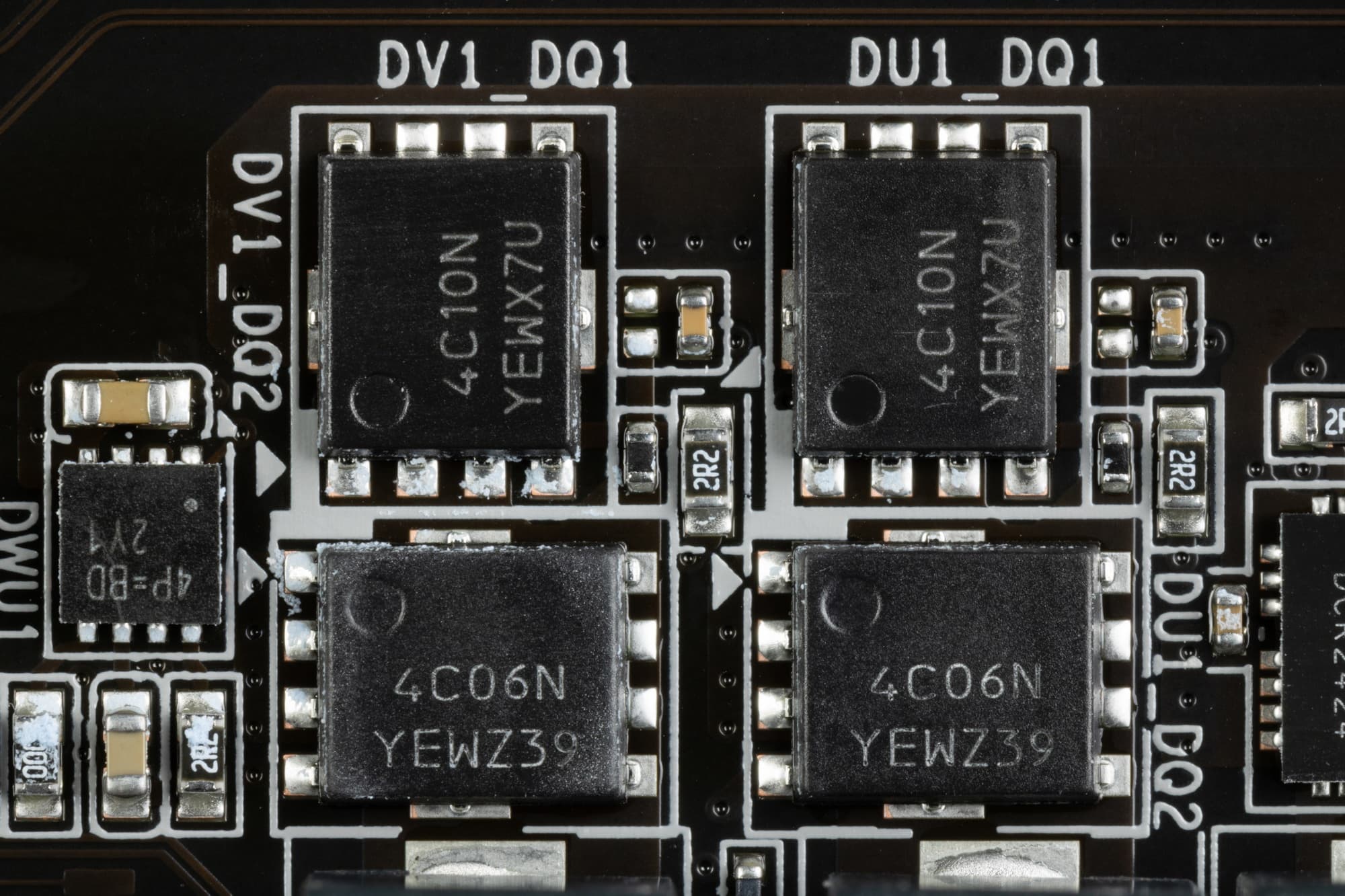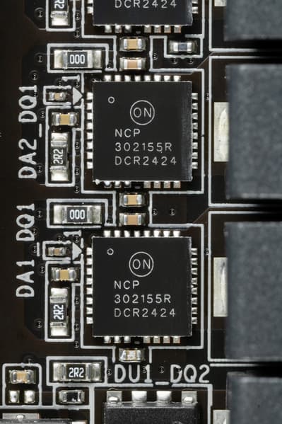 Каждая фаза VCore и SoC имеет по транзисторной сборке NCP302155 от On Semi (до 55А).