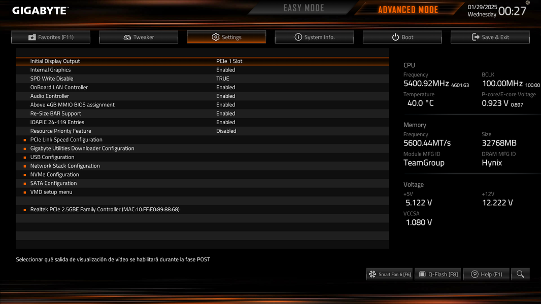 | Сетевые контроллеры | 1 × Realtek RTL8125D Ethernet 2,5 Гбит/с 1 × Intel Dual Band Wireless AX211 (Wi-Fi6E 802.11a/b/g/n/ac/ax (2,4/5 ГГц) + Bluetooth 5.3) |