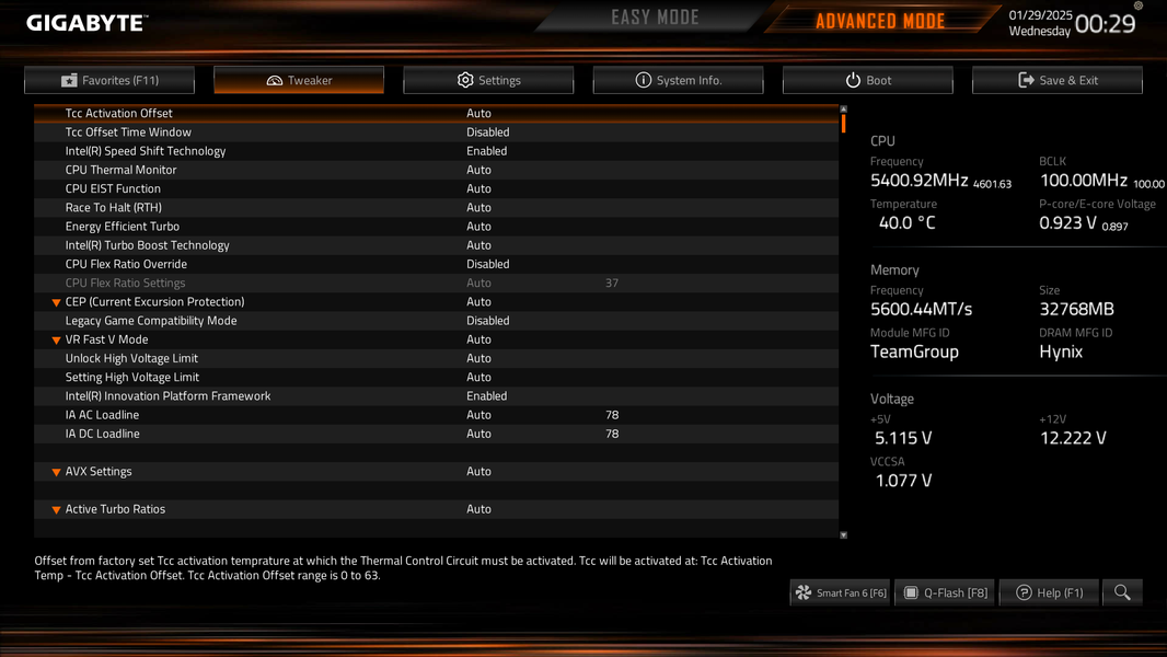 В режиме авторазгона мы получили до 5,4 ГГц по P-ядрам, и 4.6 ГГц по всем Е-ядрам. Напомню, что начиная с этого поколения процессоров, все ядра имеют по 1 потоку, то есть гипертрейдинга (многопоточности) теперь нет. Потребление процессора достигало 178 Вт. В целом приличный, но не максимальный авторазгон, хотя для такой платы это более чем нужно.
