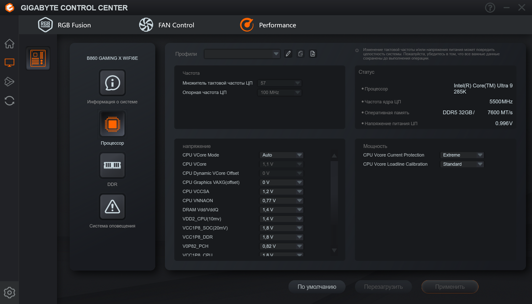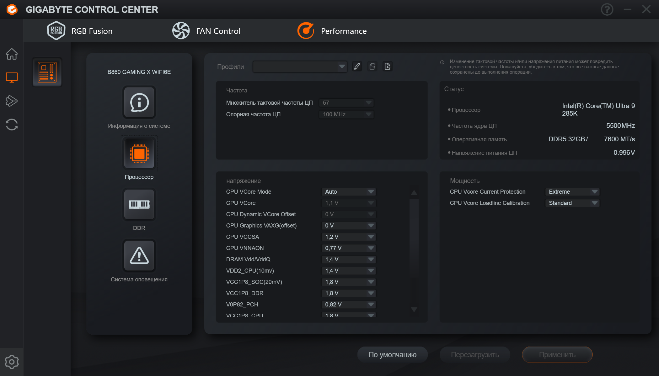 Формально имеется поддержка памяти DDR5 до 6400 МТ/с, однако всем хорошо известно, и производители материнских плат это активно рекламируют: через XMP-профили сейчас можно использовать пропускную способность до 8000 и выше МТ/с. В частности данная плата поддерживает ПСП до 9066 МТ/с.