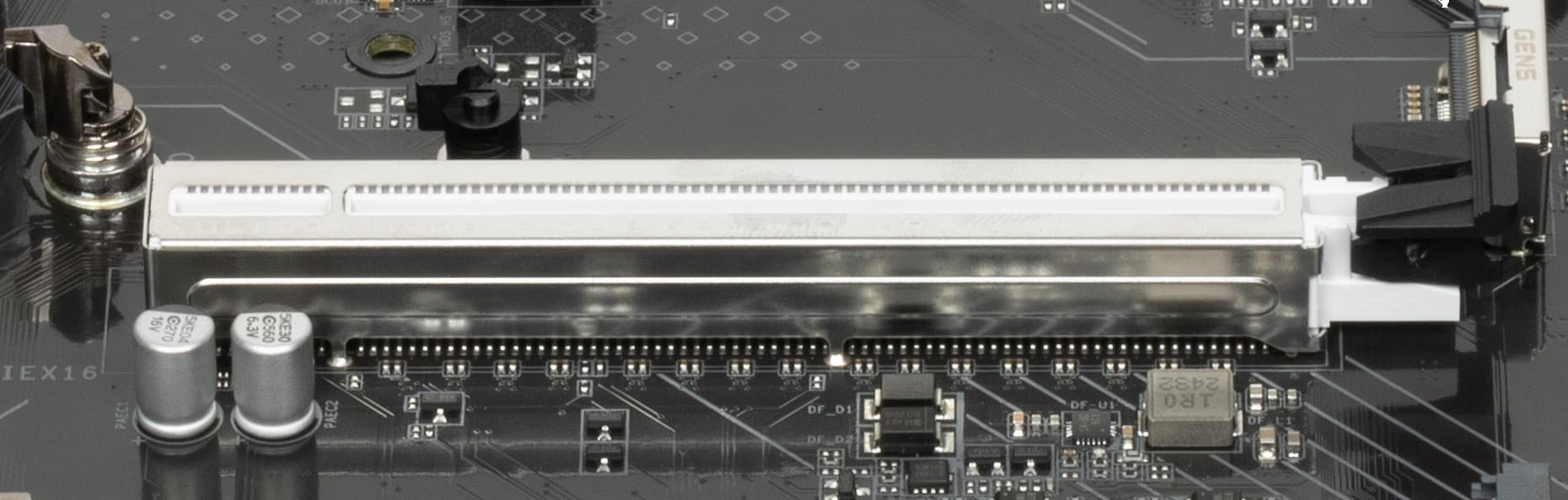 Всего на плате есть 3 слота: слот PCIe x16_1 (для видеокарт или других устройств) и два «длинных» слота PCIe x16_2/3, фактически имеющие по 1 линии PCIe 4.0.