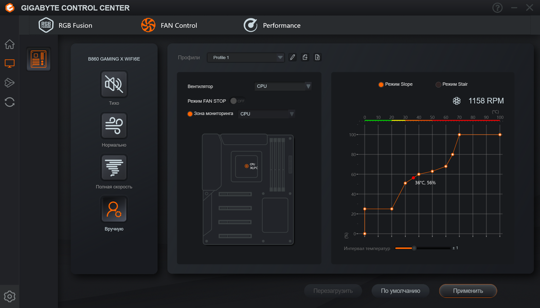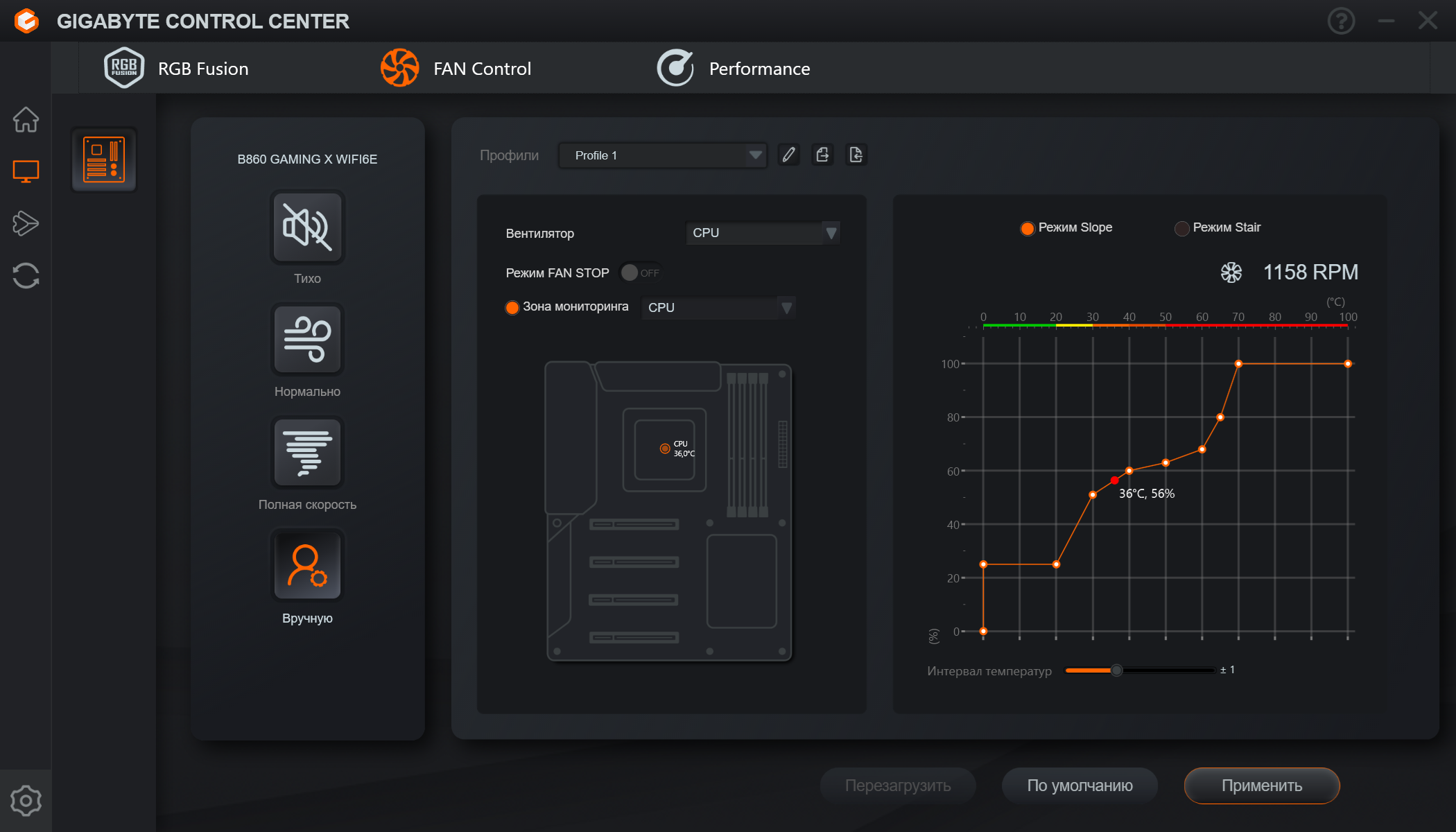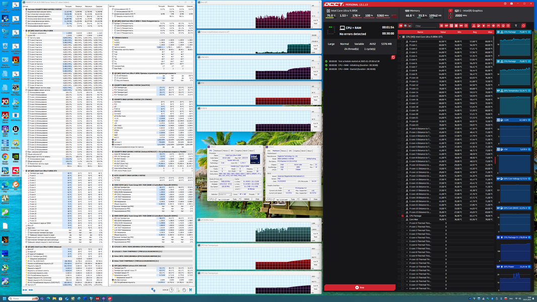 Запускаем все в режиме по умолчанию (в BIOS – профиль от Intel) . Затем нагружаем тестами OCCT.