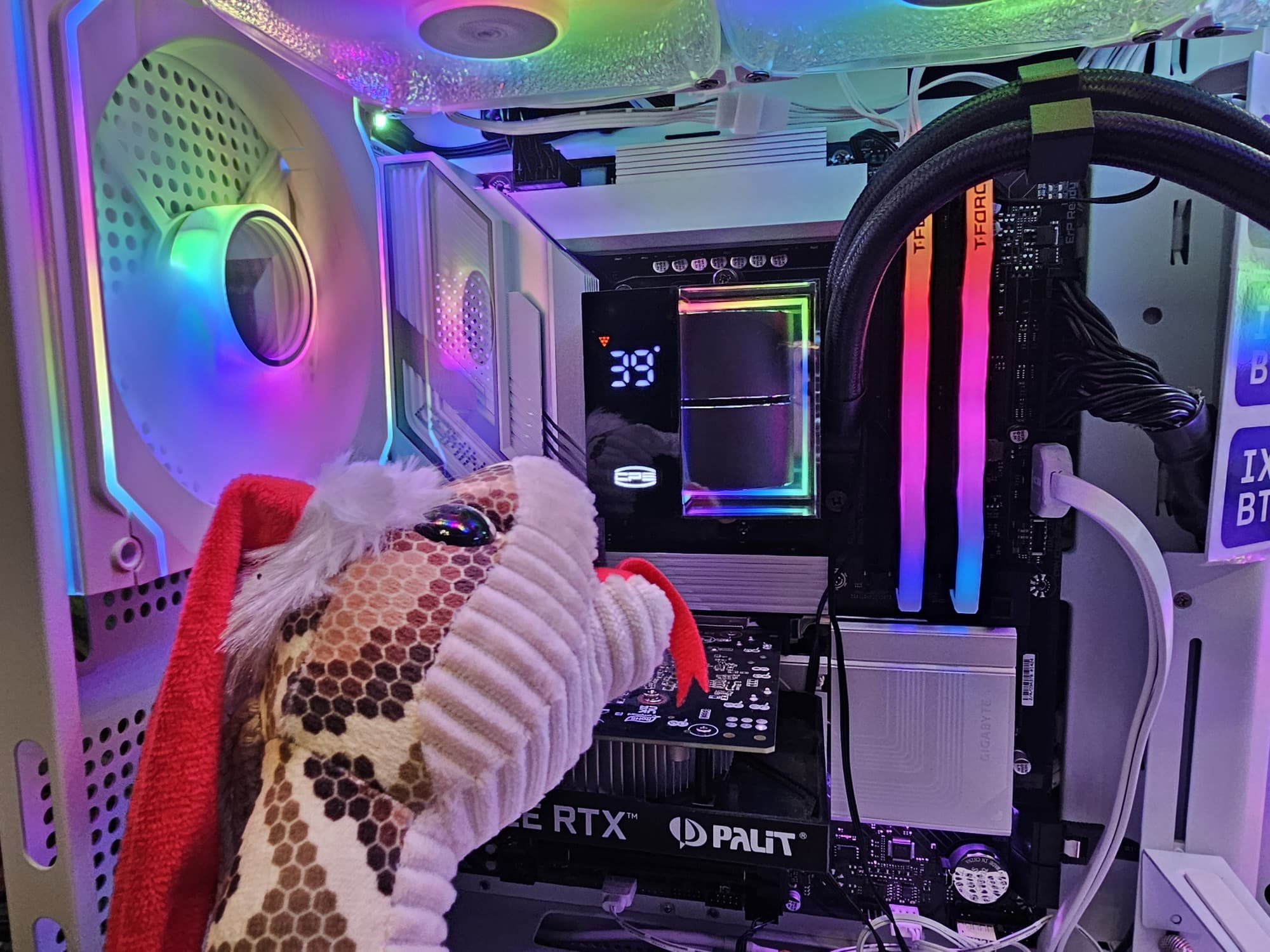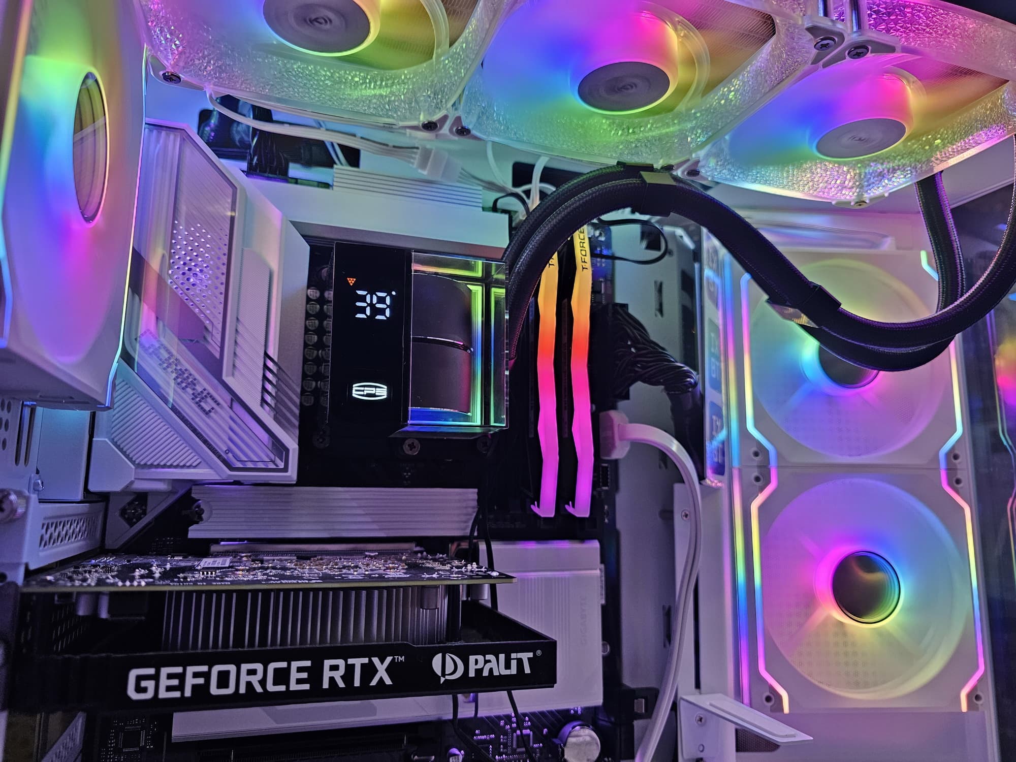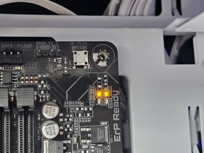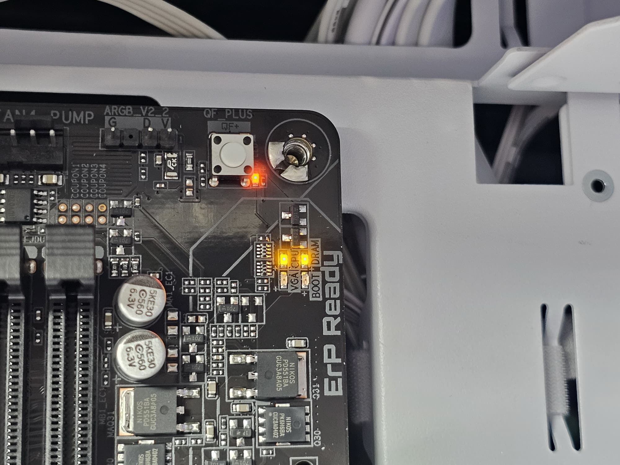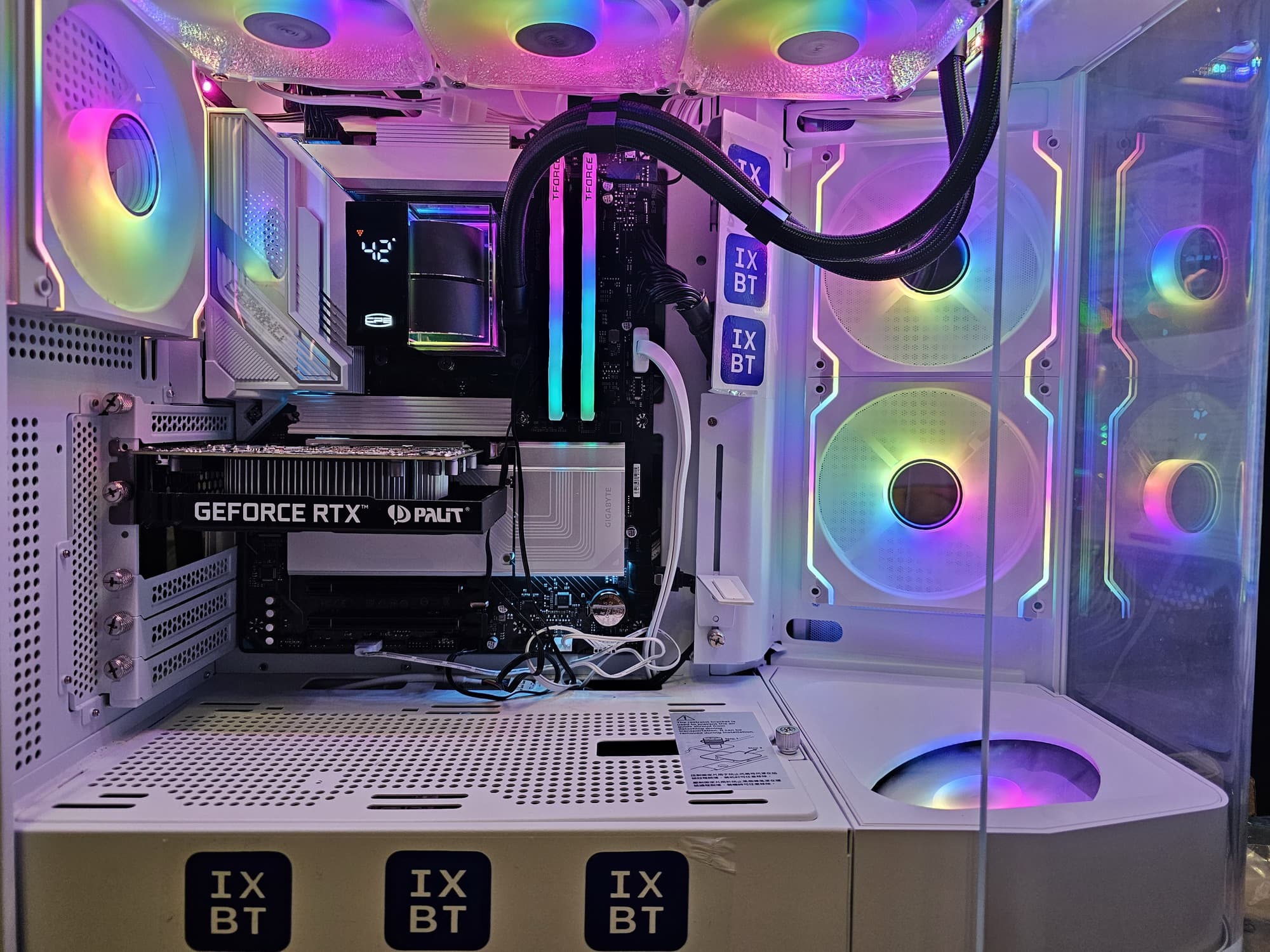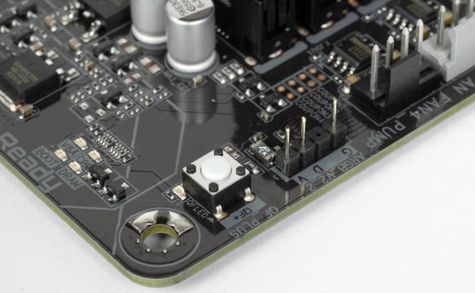 | Прочие внутренние элементы | 24-контактный разъем питания ATX 1 8-контактный разъем питания EPS12V 1 слот M.2 (E-key), занят адаптером беспроводных сетей 1 разъем для подключения порта USB 3.2 Gen2 Type-C 1 разъем для подключения 2 портов USB 3.2 Gen1 2 разъема для подключения 4 портов USB 2.0 6 разъемов для подключения 4-контактных вентиляторов и помп ЖСО 3 разъема для подключения адресуемой ARGB-ленты 1 разъем для подключения неадресуемой RGB-ленты 1 разъем аудио для передней панели корпуса 1 переключатель сброса CMOS 1 переключатель Reset (конфигурируемый через BIOS) 1 разъем для подключение систем безопасности TPM 1 разъем для подключения управления с передней панели корпуса 1 разъем S/PDIF |