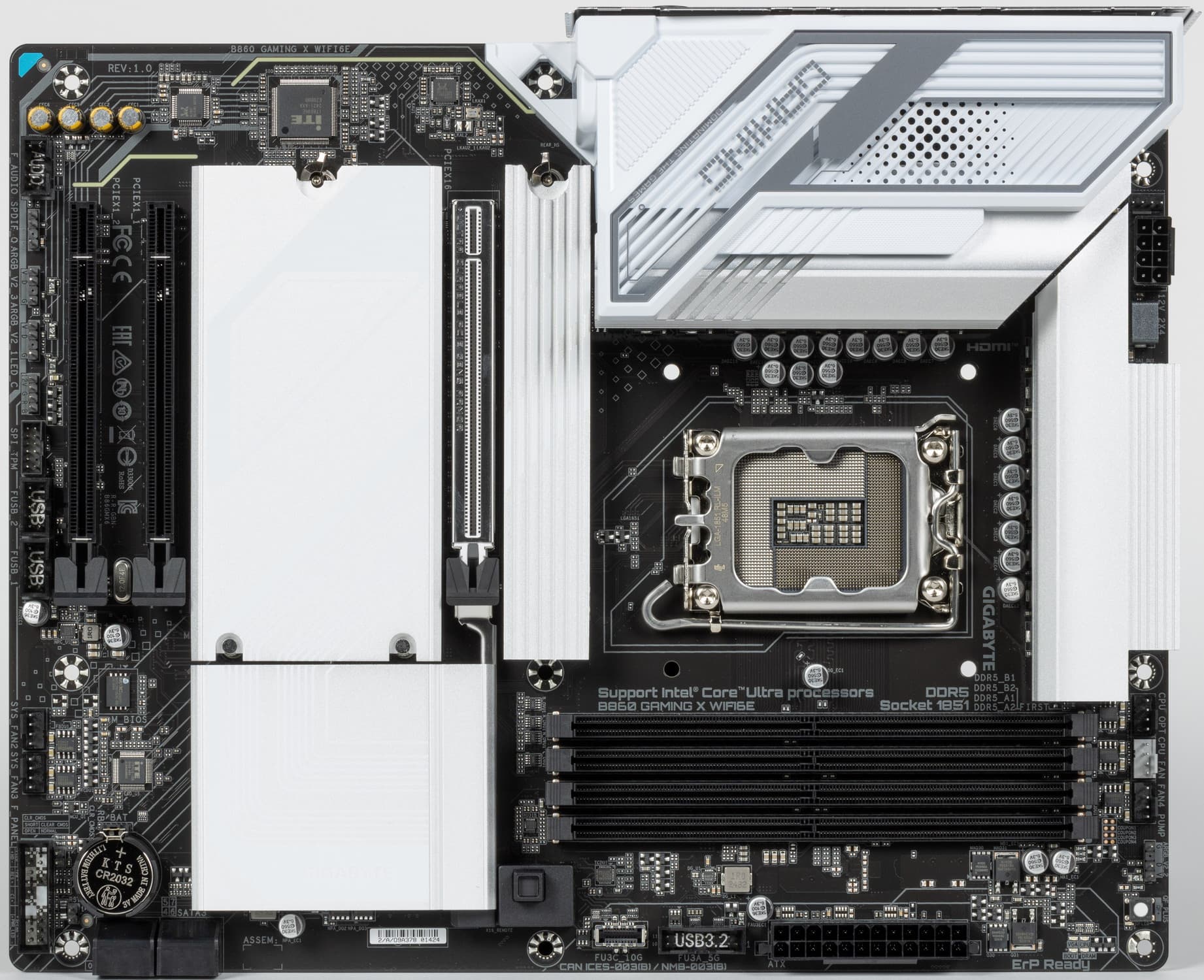 Gigabyte B860 Gaming X WiFi 6E поддерживает процессоры Intel Core Ultra 2xx, выполненные под разъем (сокет) LGA1851.