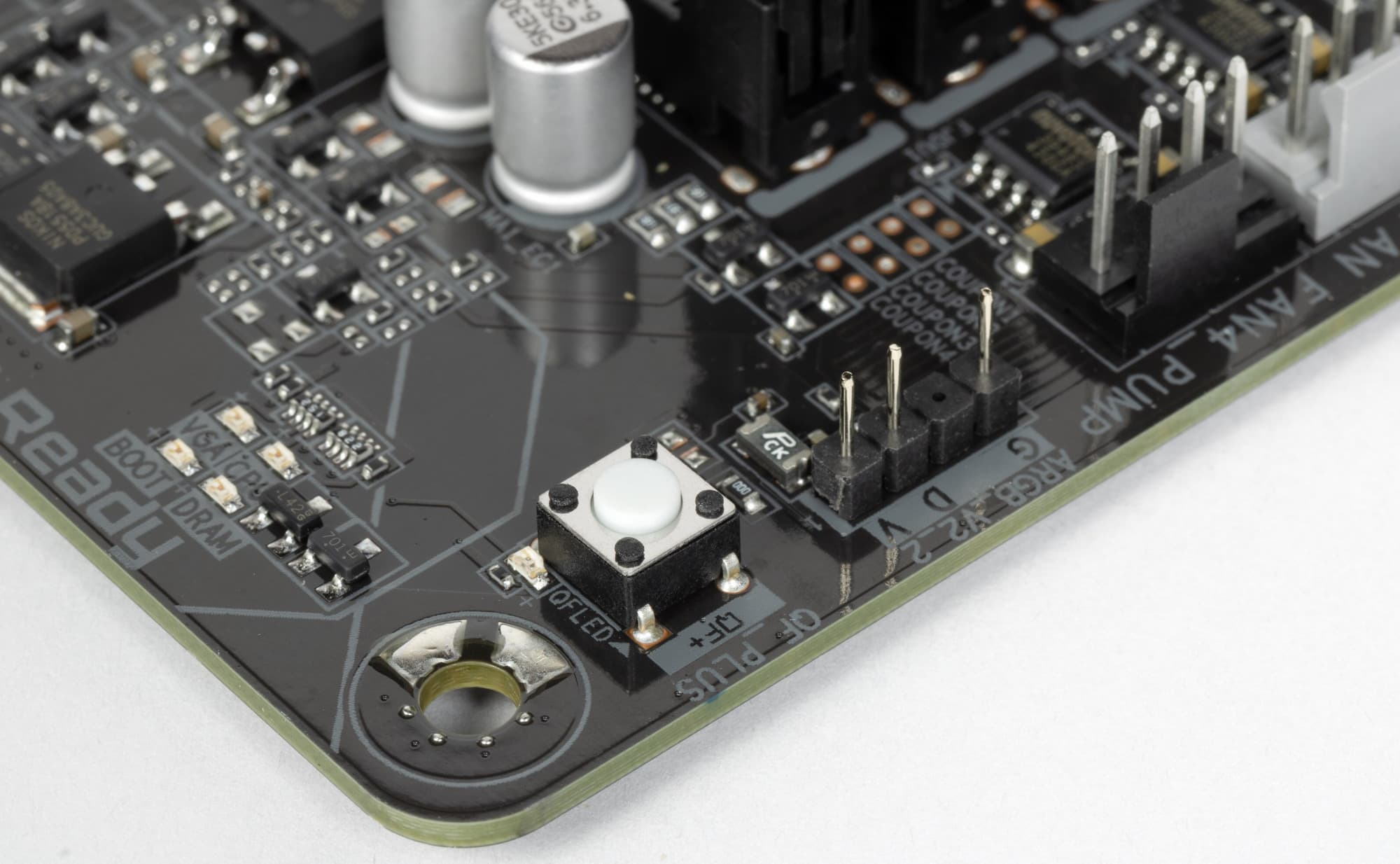 Для удобного извлечения видеокарт из слота PCI_E1 имеется особый механизм EZ-Latch Plus c кнопкой.
