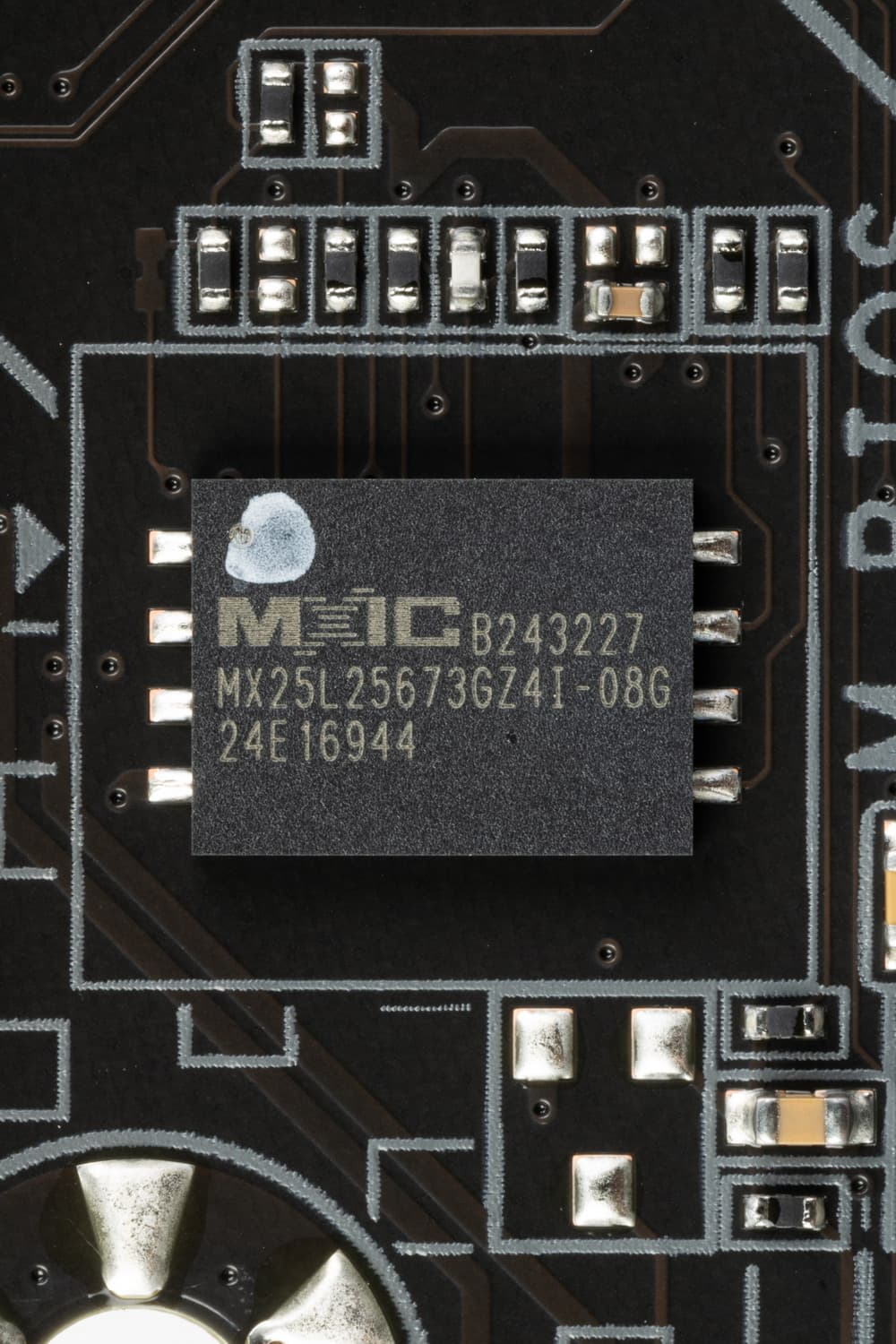 В арсенале платы также есть 4 порта SATA и 6 разъемов для вентиляторов. Система питания процессора неплохая, способная обеспечить работу даже топовых процессоров с разблокированным множителем с приличным запасом на разгон. Плата имеет грамотную систему охлаждения каждого потенциально греющегося элемента, включая накопители в слотах M.2. Сетевые возможности включают скоростной проводной контроллер 2,5 Гбит/с и один современный беспроводной — Wi-Fi 6E + Bluetooth 5.3. В числе плюсов платы можно упомянуть широкие возможности для подключения дополнительных RGB-устройств.