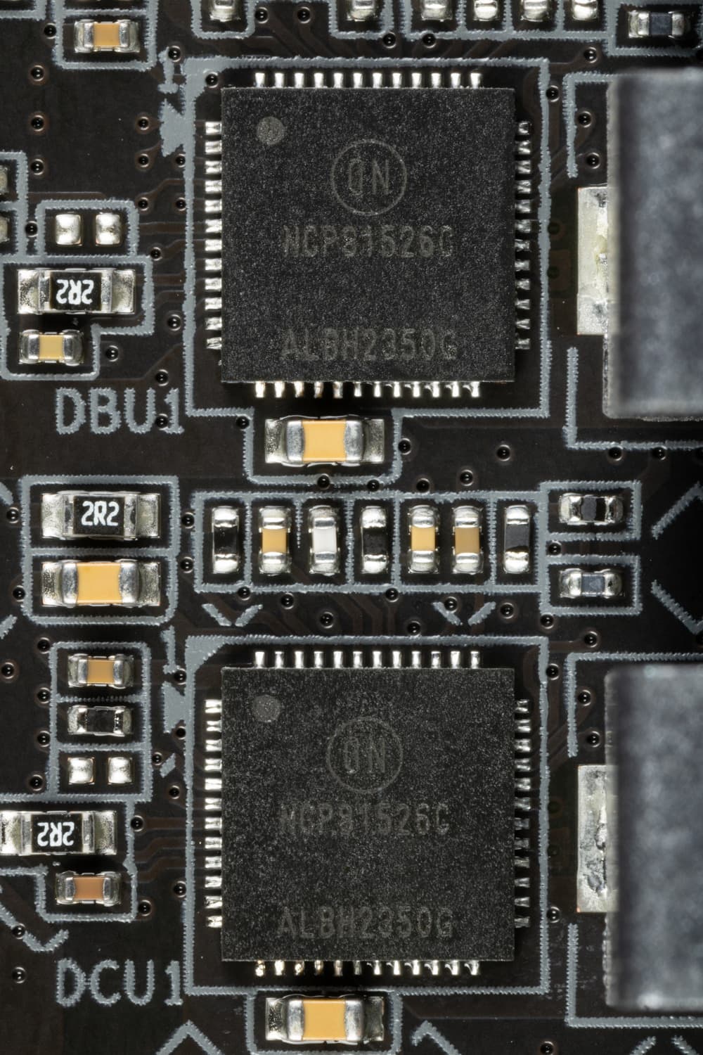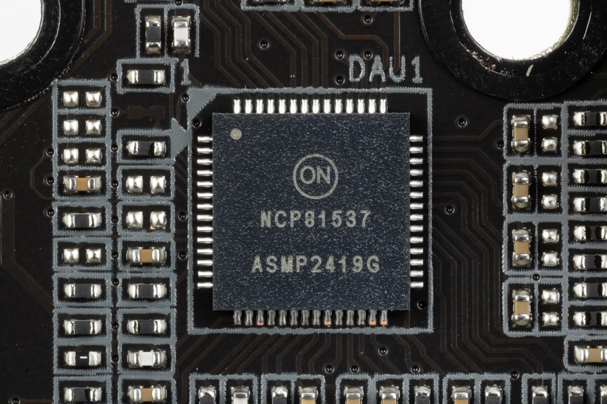 Управление всей схемой возложено на ШИМ-контроллер NCP81537 от On Semi (он поддерживает до 10х фаз, поэтому у нас идет параллельная схема управления фазами – 2x6 для VCore + 2 VCCSA + 1 iGPU + 1 VNNAON = 10 реальных фаз).