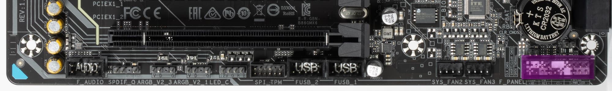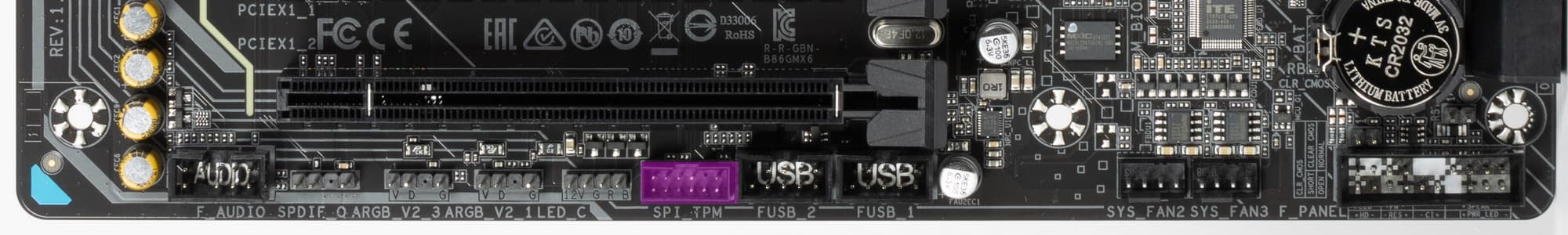 - 2 порта USB 3.2 Gen2: все реализованы через B860 и один представлен на задней панели портом Type-A (красного цвета), а второй внутренним портом Type-C (для подключения к соответствующему разъему на передней панели корпуса);