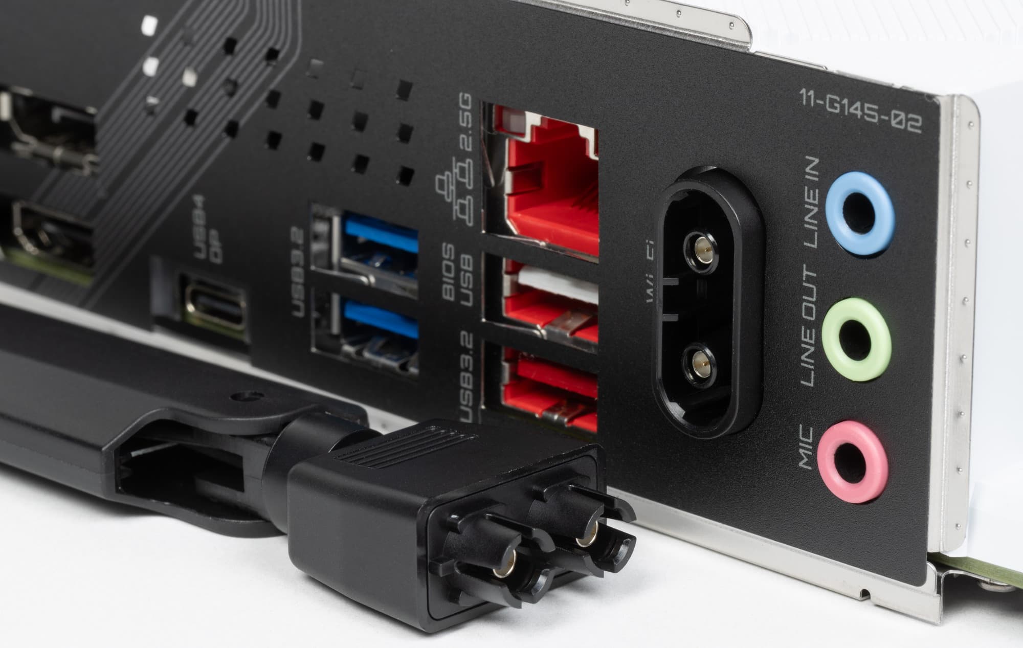 И тут надо особо отметить уже вовсю применяемый новый способ крепления антенн к задней панели портов. Теперь прикручивать антенны не надо (даже если имеется резьба для их привинчивания), просто вставить в разъемы на матплате. Разъединить также легко.