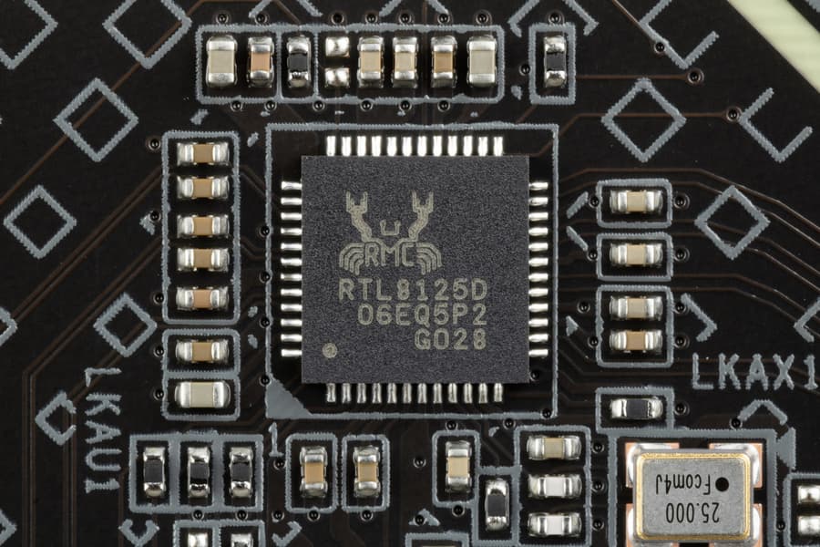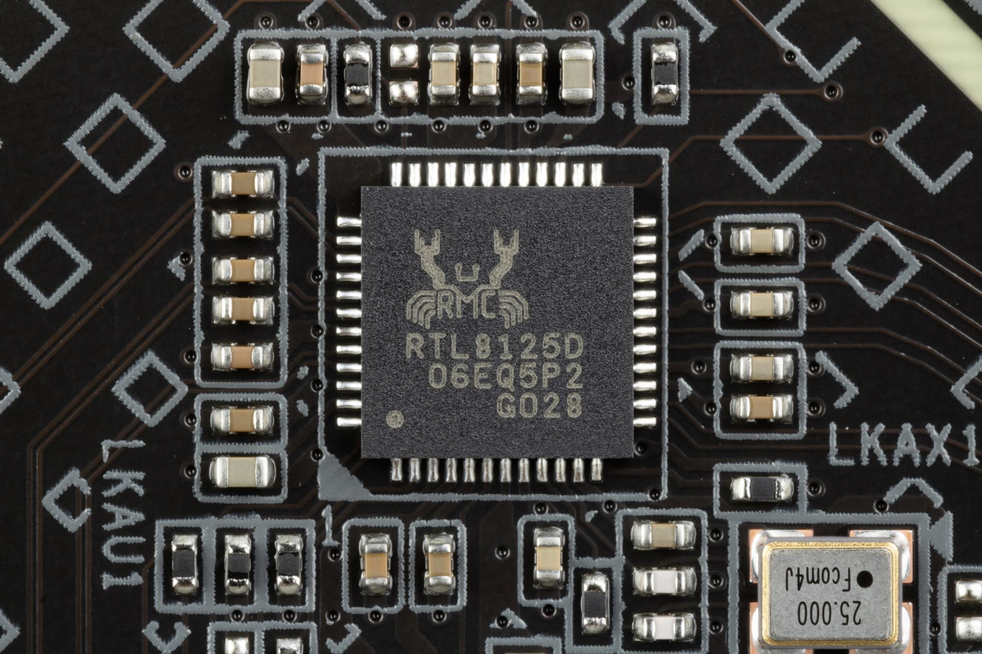 Материнская плата оснащена средствами связи неплохо. Имеется скоростной Ethernet-контроллер Realtek RTL8125D, способный работать по стандарту 2,5 Гбит/с.