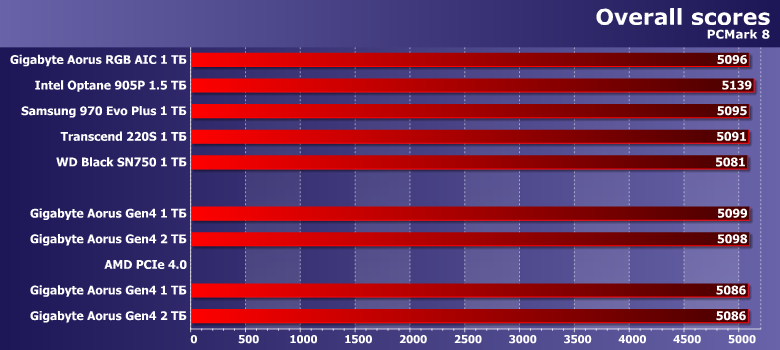 При этом с точки зрения «общесистемных» нагрузок любые современные NVMe-накопители с большим запасом превосходят потребности прикладного программного обеспечения, так что ни интерфейс, ни (даже) радикальное увеличение производительности самой памяти (что в теории обеспечивает Intel Optane) не оказывают существенного влияния на итоговый результат.