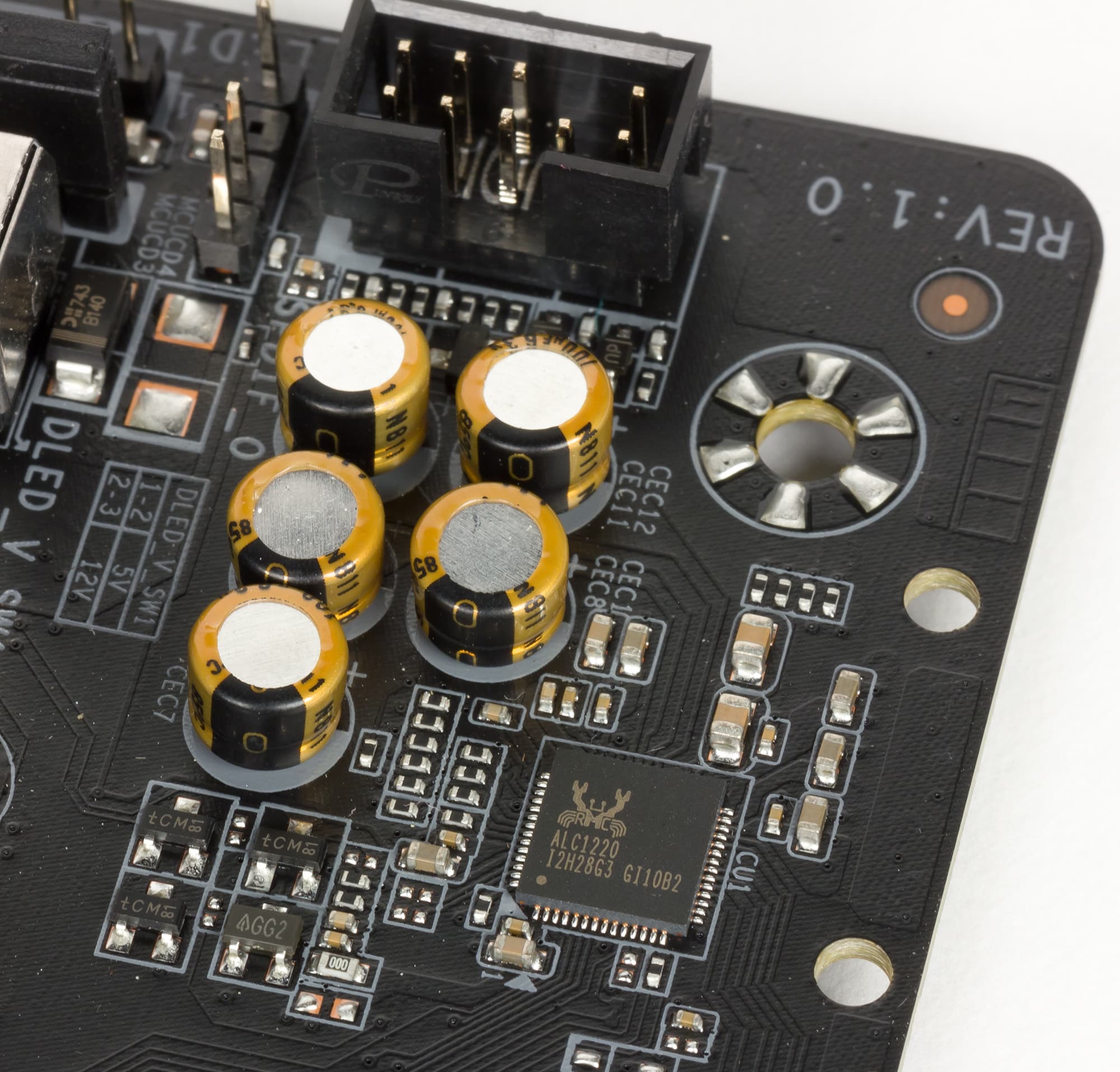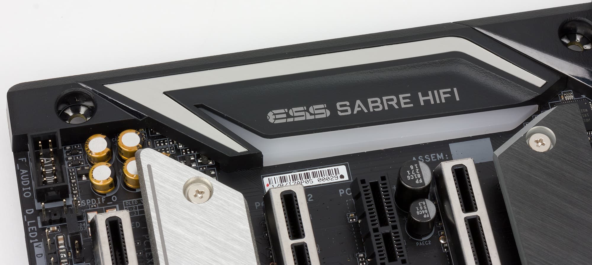 Аудиоподсистема платы X399 Aorus Xtreme основана на HDA-аудиокодеке Realtek ALC1220. Все элементы аудиотракта выделены в отдельную зону на PCB. Есть в аудиотракте и специализированный DAC ESS ES9118.