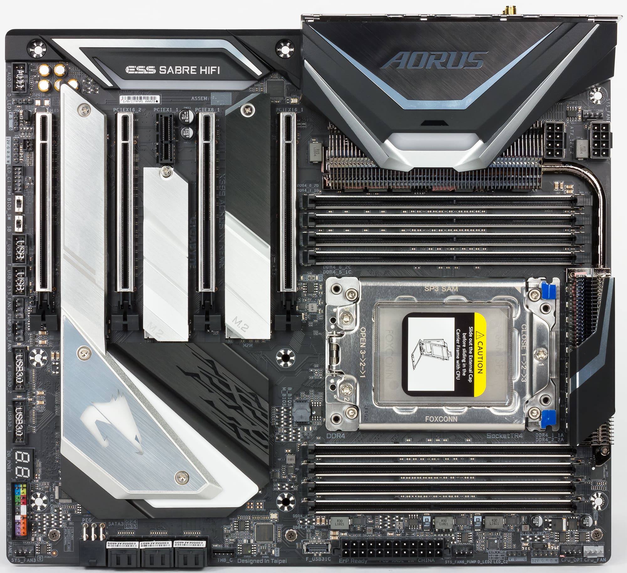 Что касается позиционирования данной платы, то для игровых ПК (именно так ее позиционирует компания Gigabyte) она, конечно, подойдет. Однако это не оптимальный вариант, поскольку особого смысла в использовании многоядерных процессоров в играх просто нет, и здесь можно будет установить разве что младший 8-ядерный процессор Threadripper 1900X. Обычно процессоры с числом ядер 12 и более используются для высокопроизводительных рабочих станций, но даже для таких ПК еще нужно найти приложения, которые способны использовать все ядра процессора. Кроме того, трудно представить себе игровой компьютер, которому потребуется три сетевых интерфейса (не считая беспроводного), один из которых — 10-гигабитный. С другой стороны, владельца очень мощной рабочей станции вряд ли привлечет мигание и цветные переливы многочисленных светодиодов на плате и возможность подключения светодиодных лент. Пожалуй, корректно будет сказать, что это просто топовая плата, в которой есть всё и которая может быть использована для любой цели, хотя часть ее функциональности при этом почти неизбежно останется незадействованной.