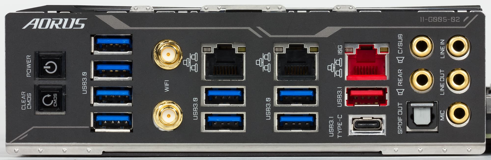 | Разъемы на задней панели | 1 × USB 3.1 Type A 1 × USB 3.1 Type C 8 × USB 3.0 Type A 3 × RJ-45 3 × SMA-разъема для антенн 5 аудиоразъемов типа миниджек 1 × S/PDIF |