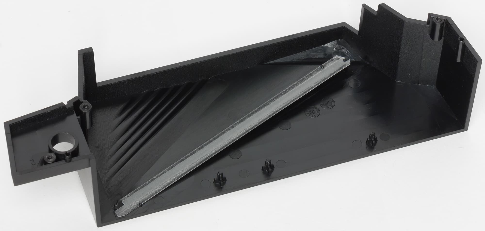 Сразу же обращает на себя внимание встроенная панель портов ввода-вывода и накрывающий ее пластиковый кожух со встроенной подсветкой.