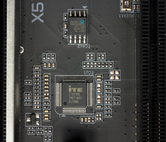 Еще один микроконтроллер iTE IT8795E на плате Gigabyte отвечает за обновление BIOS с USB-накопителя без использования процессора и оперативной памяти.