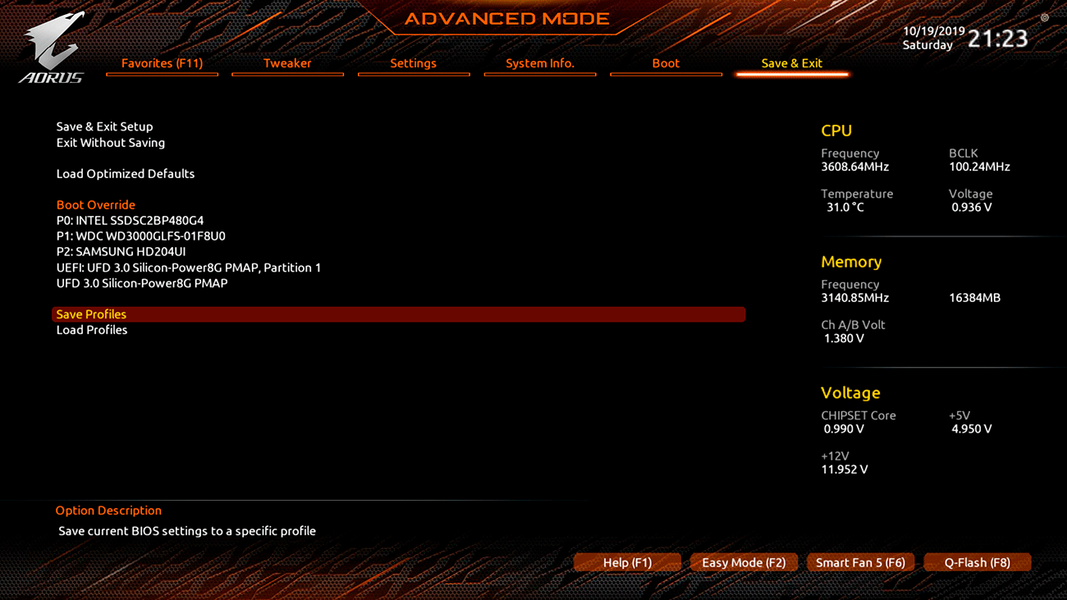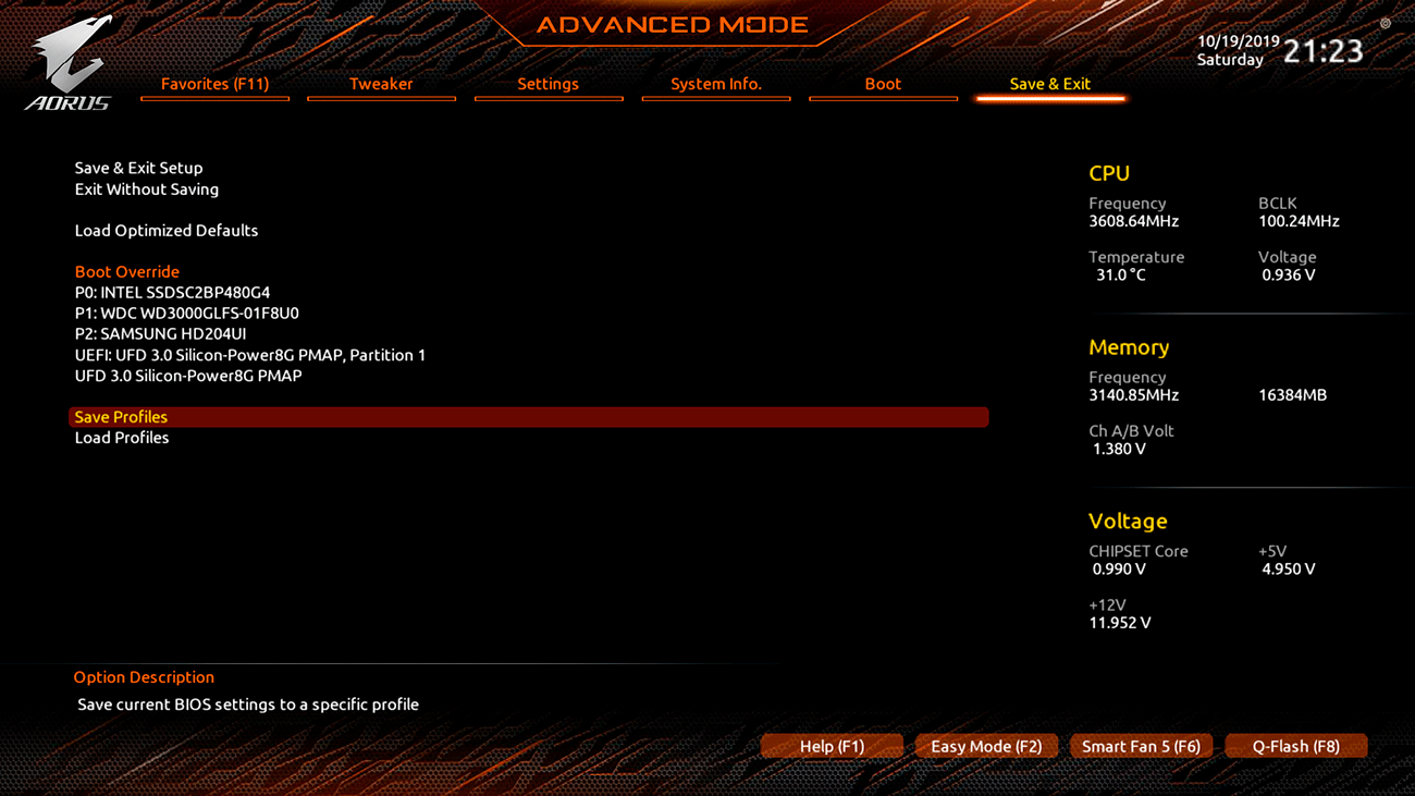 Данная оболочка применяется в платах Gigabyte уже довольно давно, поэтому хорошо отлажена и работает очень шустро. При выходе из BIOS отображаются все измененные в процессе работы настройки.