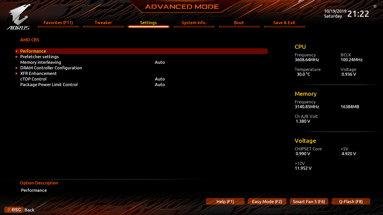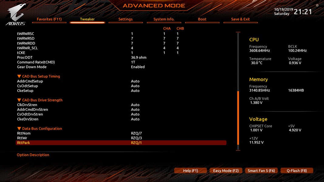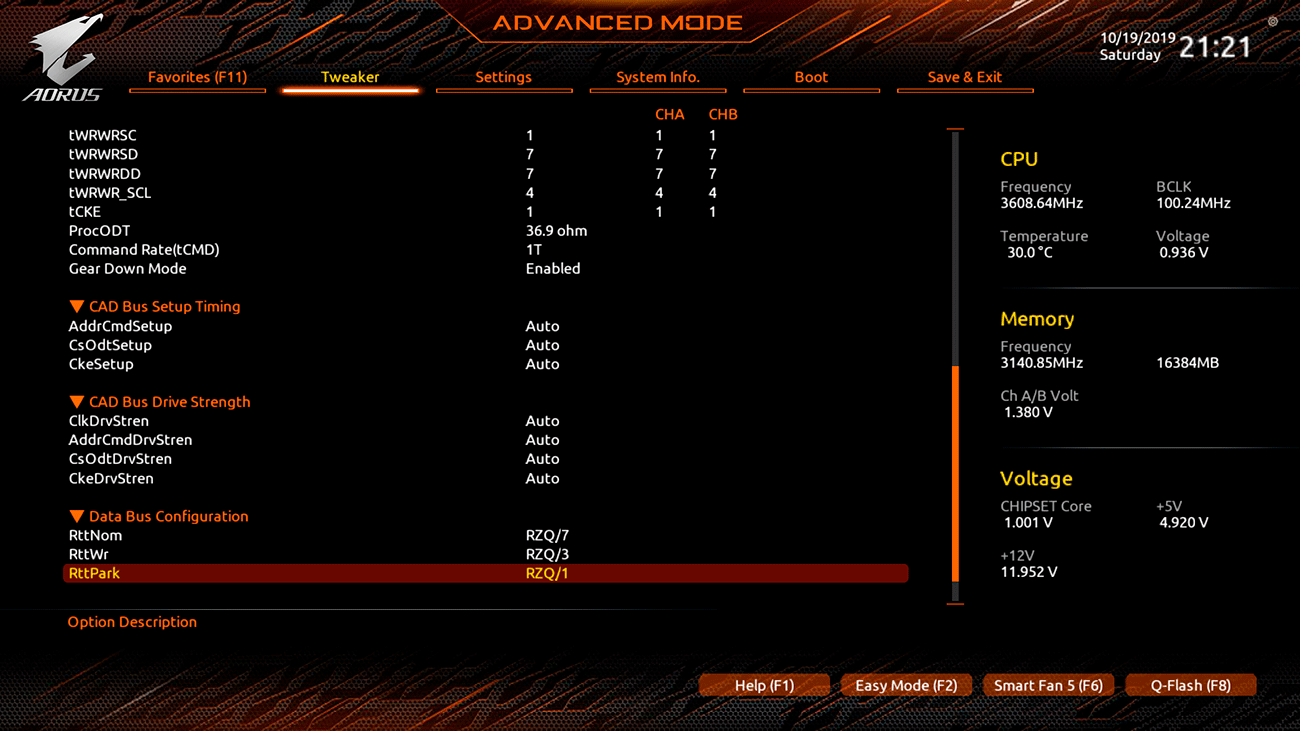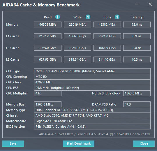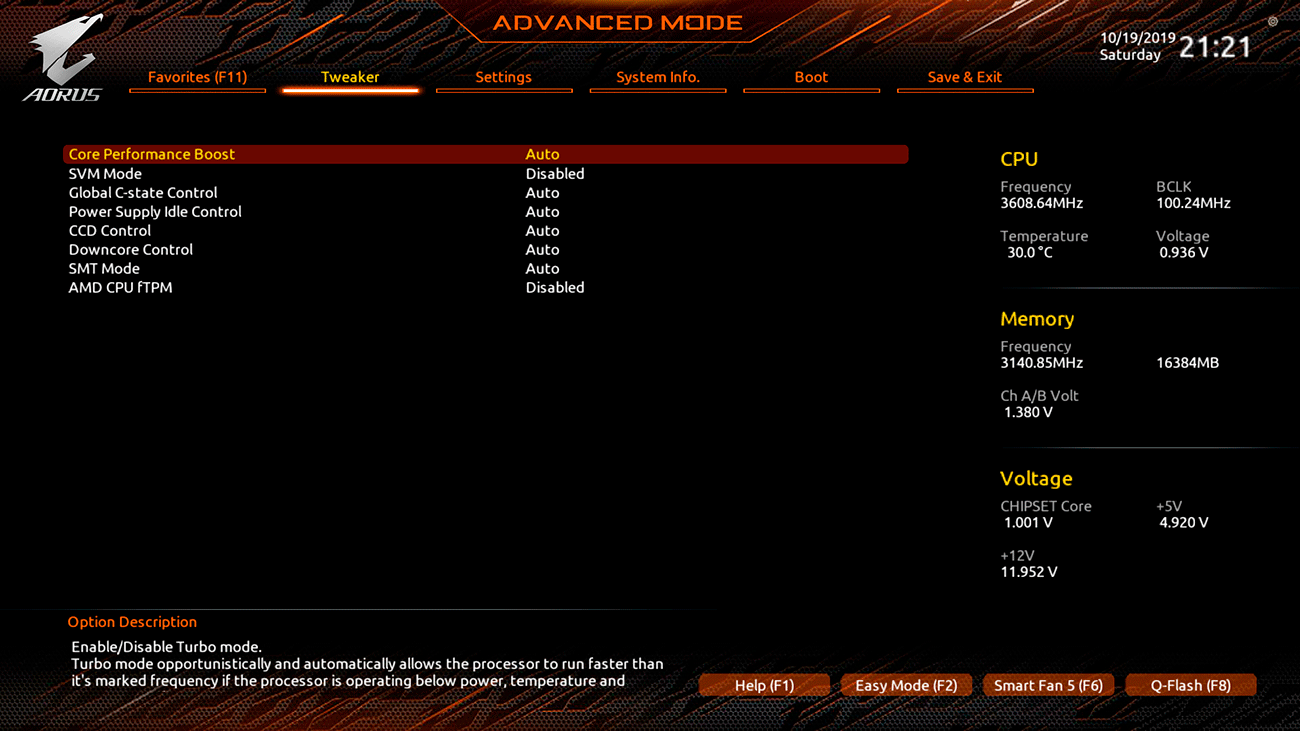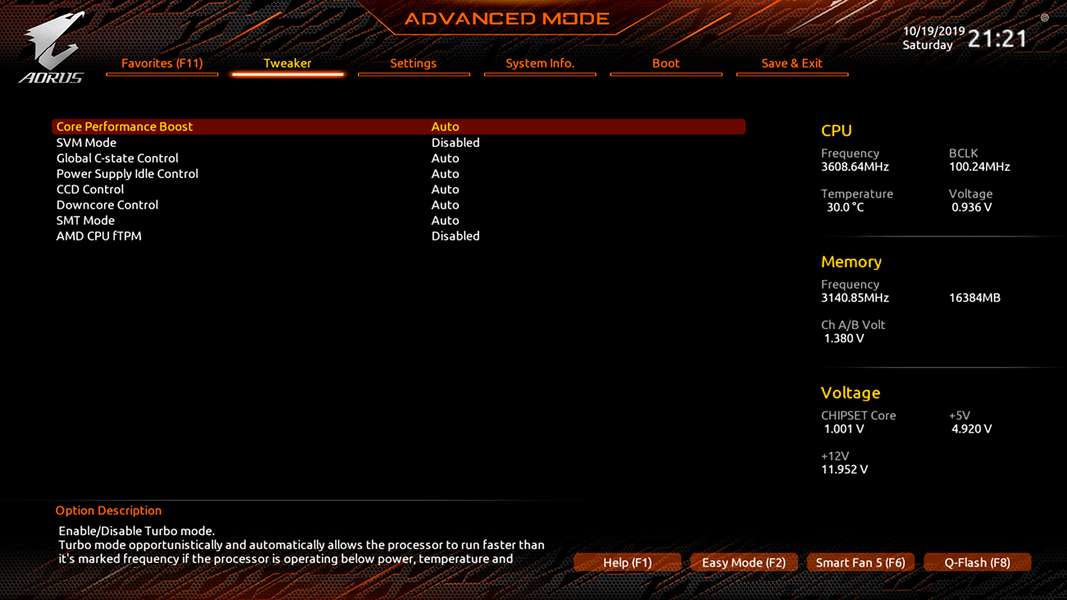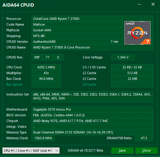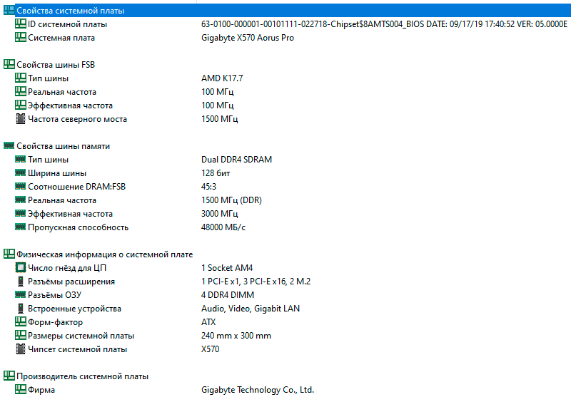 - системная плата: Gigabyte X570 Aorus Pro (AMD X570, Socket AM4, BIOS F6b от 17.09.2019, AGESA 1.0.0.3 ABBA);