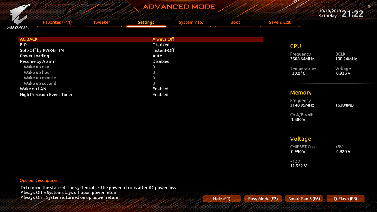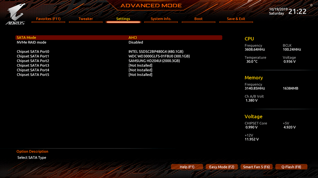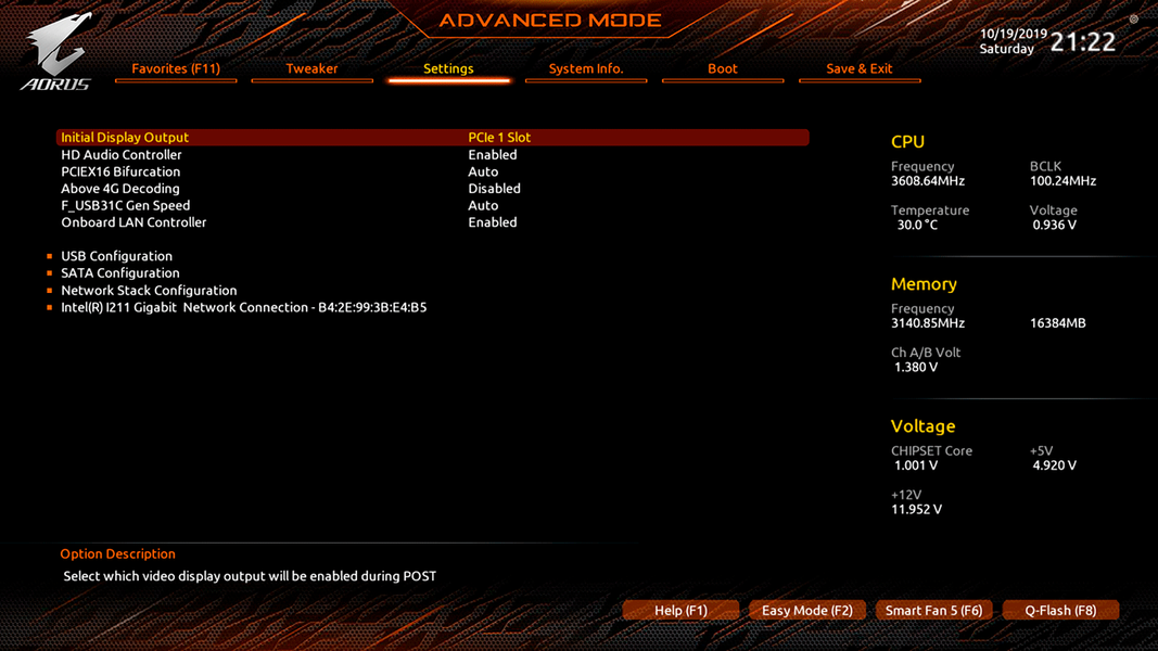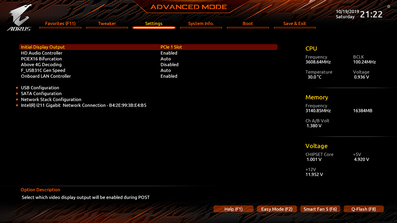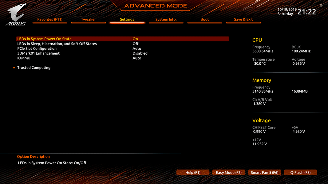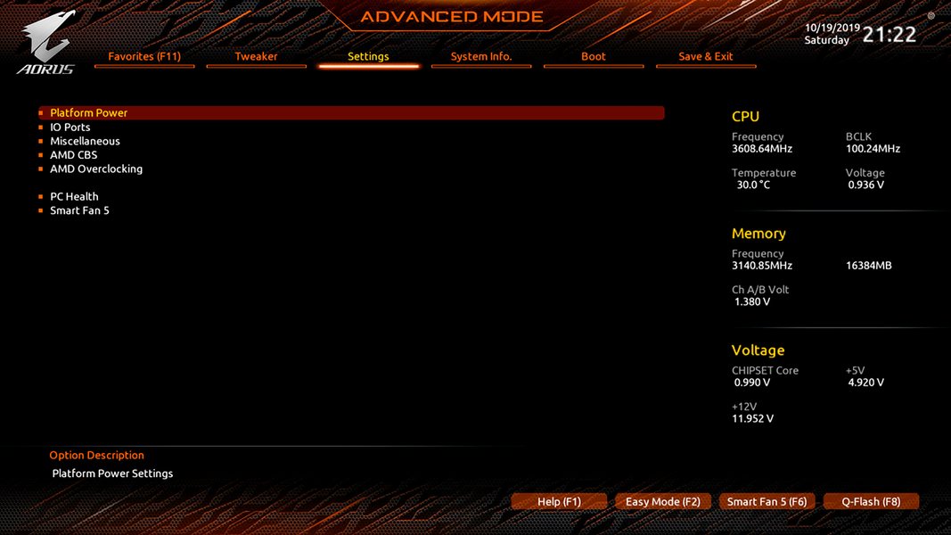 Основной раздел Settings аккумулировал настройки контроллеров и периферийных устройств платы, а также в нем можно найти и активировать тонкие настройки процессоров AMD Ryzen.
