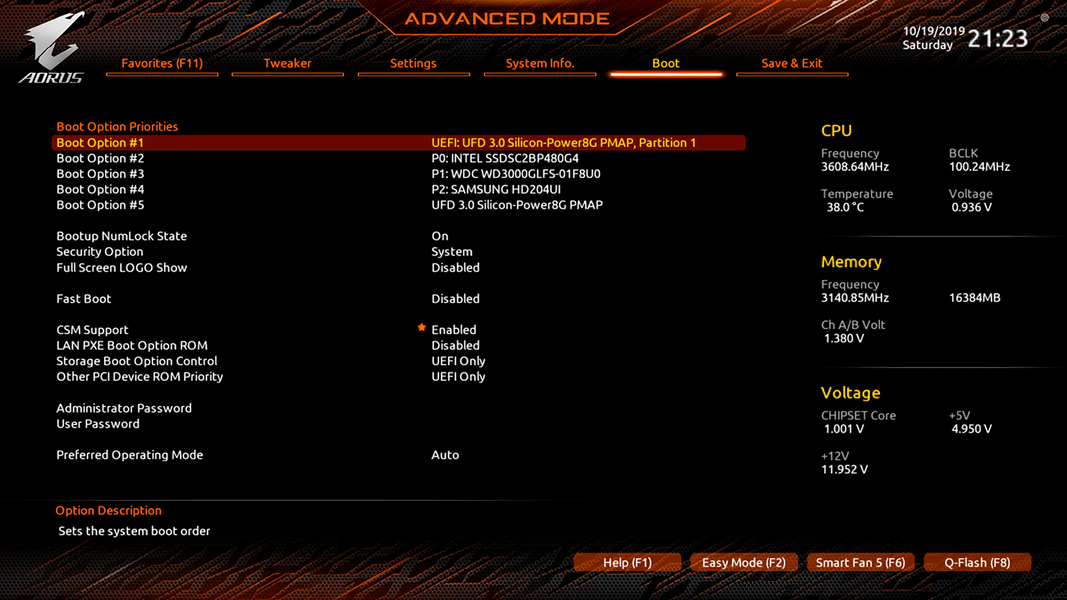 Напоследок приведем скриншоты разделов BIOS с информацией о системе, встроенной утилиты Q-Flash и параметрами загрузки системы.