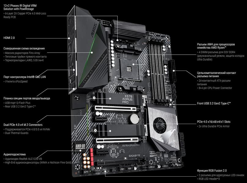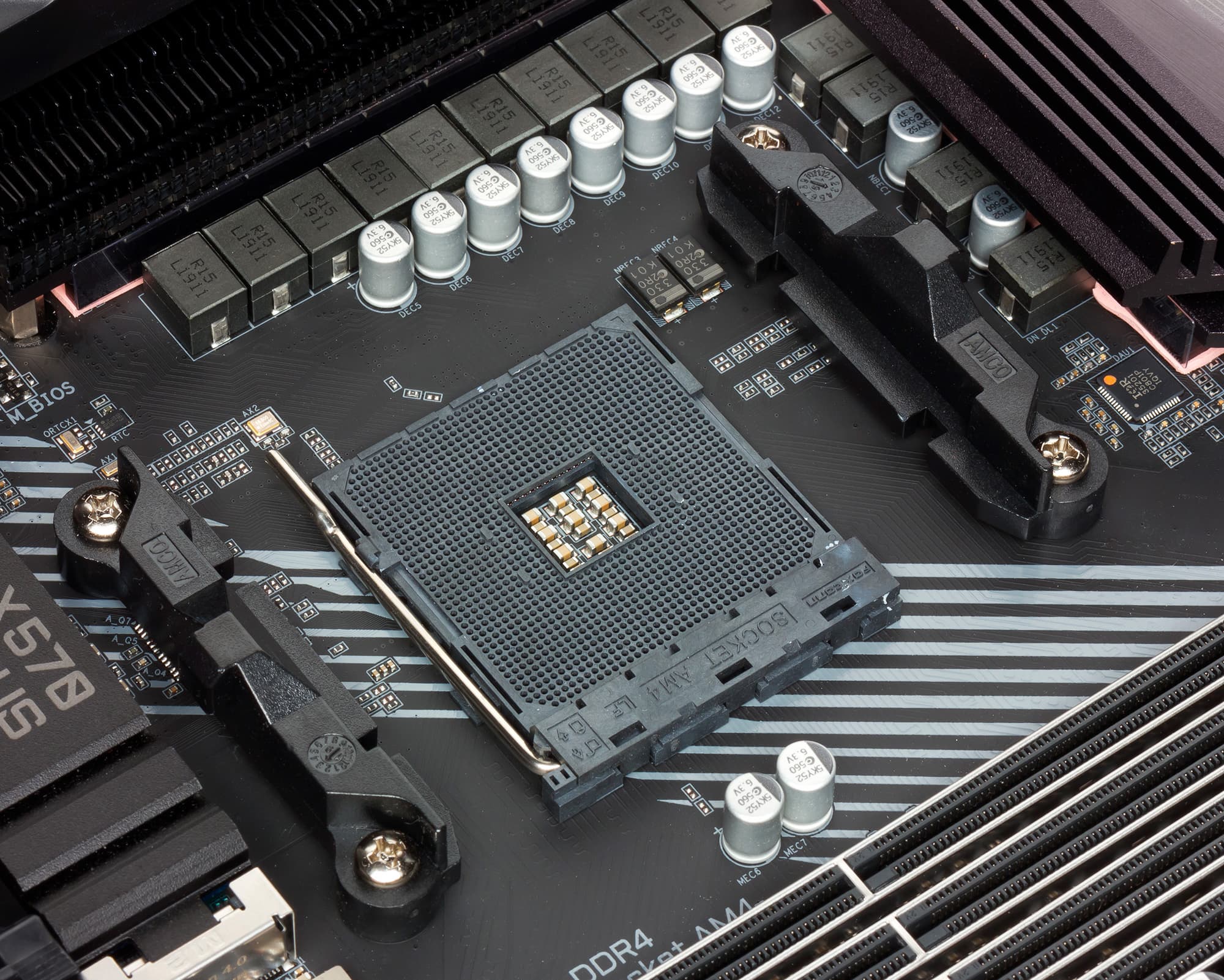 Gigabyte X570 Aorus Pro наделена разъемом Socket AM4 с поддержкой всех процессоров AMD Ryzen второго и третьего поколений.