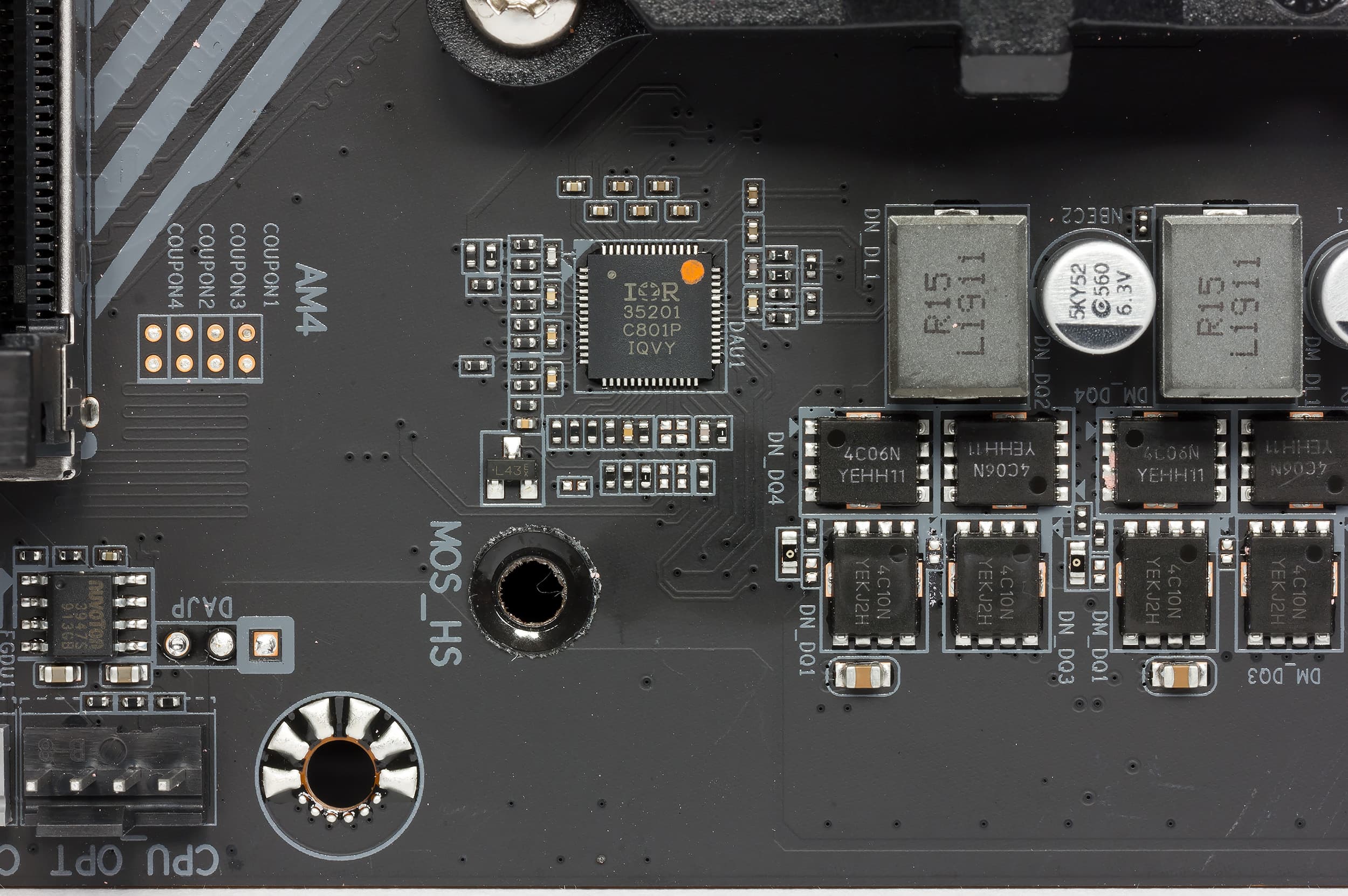 На питание SoC отведено две отдельных фазы, а за управление питанием процессора отвечает восьмиканальный PWM-контроллер IR 35201.