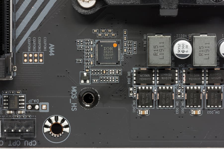 Про набор системной логики AMD X570 ничего особенного сказать нельзя, он абсолютно идентичен оному на других материнских платах этой серии и контактирует со своим радиатором через термопрокладку.