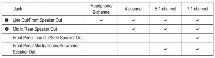 Аудиотракт вынесен на угловую часть платы, не пересекается с другими элементами. У карты два универсальных разъема по приему и выводу сигналов плюс оптический S/PDIF. Еще раз напомню, что вывод по схеме 7.1 не только через S/PDIF, но и по схеме ниже.