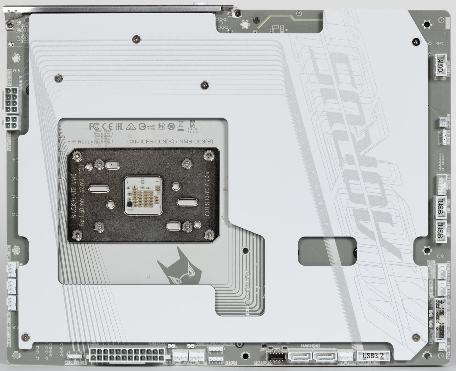 Материнская плата имеет бэкплейт с оборотной стороны, который служит элементом защиты платы и для жесткости конструкции.