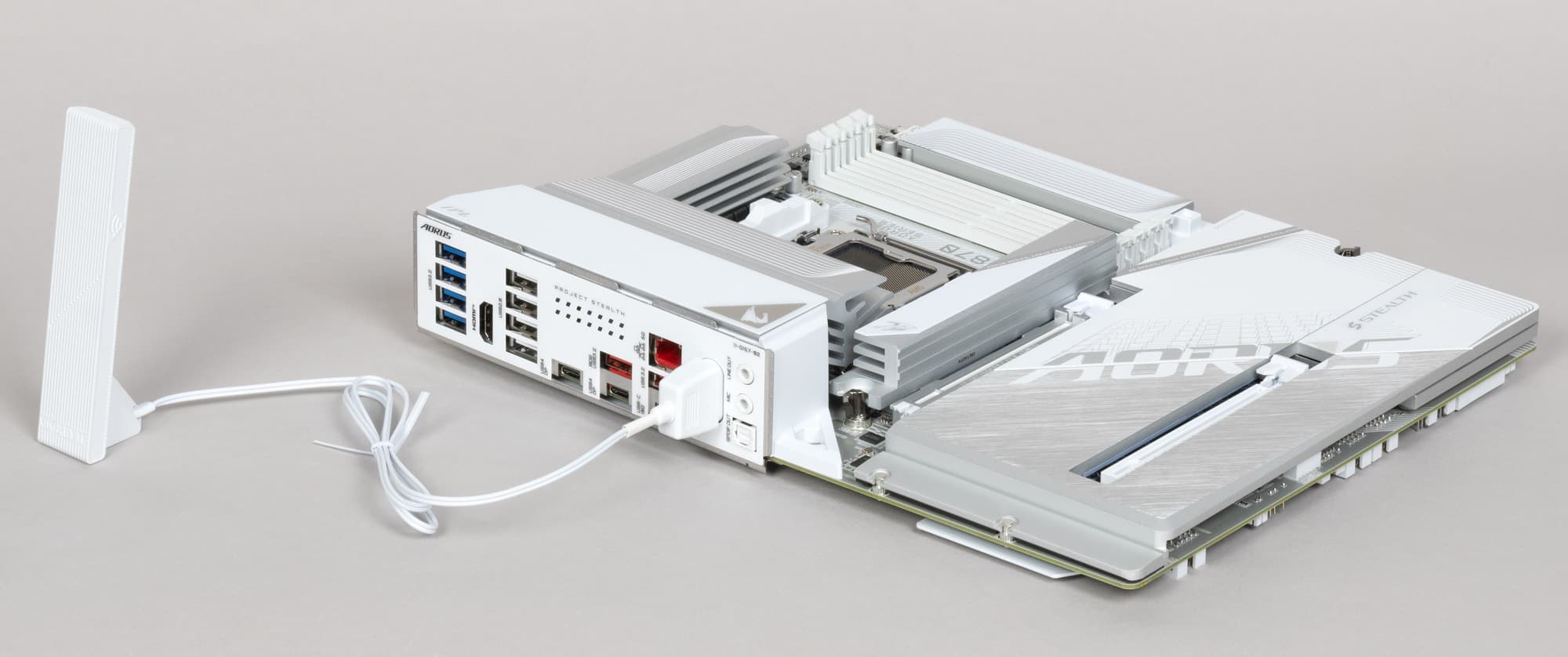 У Gigabyte X870 Aorus Stealth Ice имеется 20 портов USB разных видов, включая два самых быстрых на сегодня порта USB4 и один уже не самый быстрый USB 3.2 Gen2×2. Оба порта USB4 обеспечивают скорость передачи данных до 40 Гбит/с и поддерживают вывод изображения в формате DP.