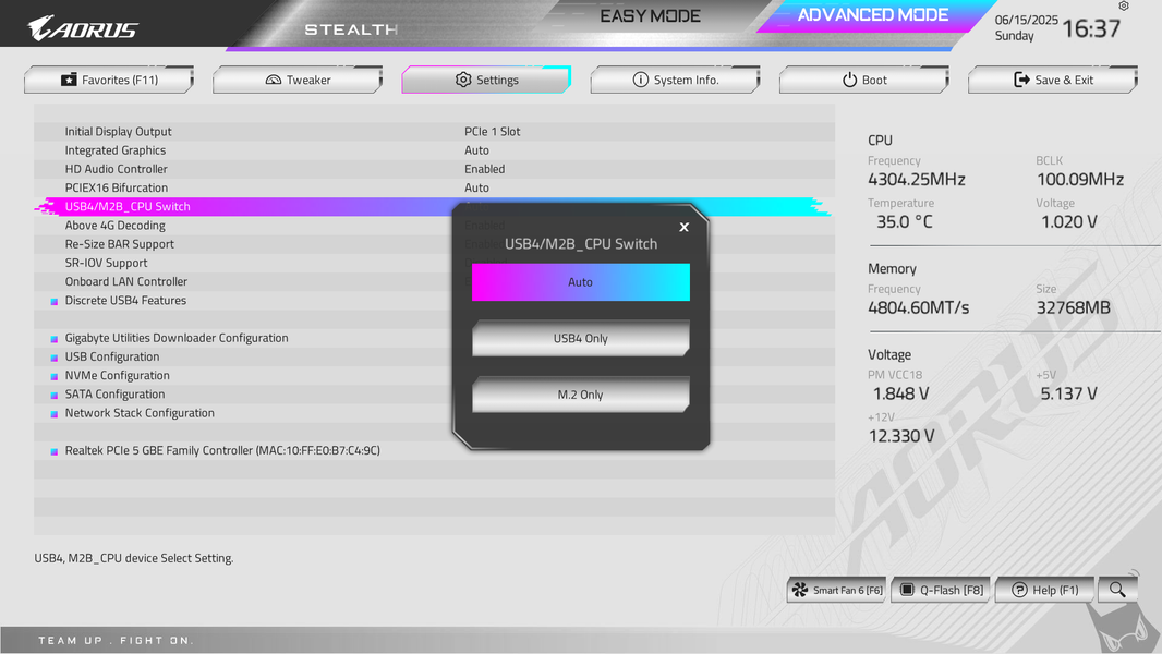 - Переключатель: или хаб USB4 ASMedia ASM4242 или порт M.2 (M2B_CPU) (4 линии PCIe 4.0)