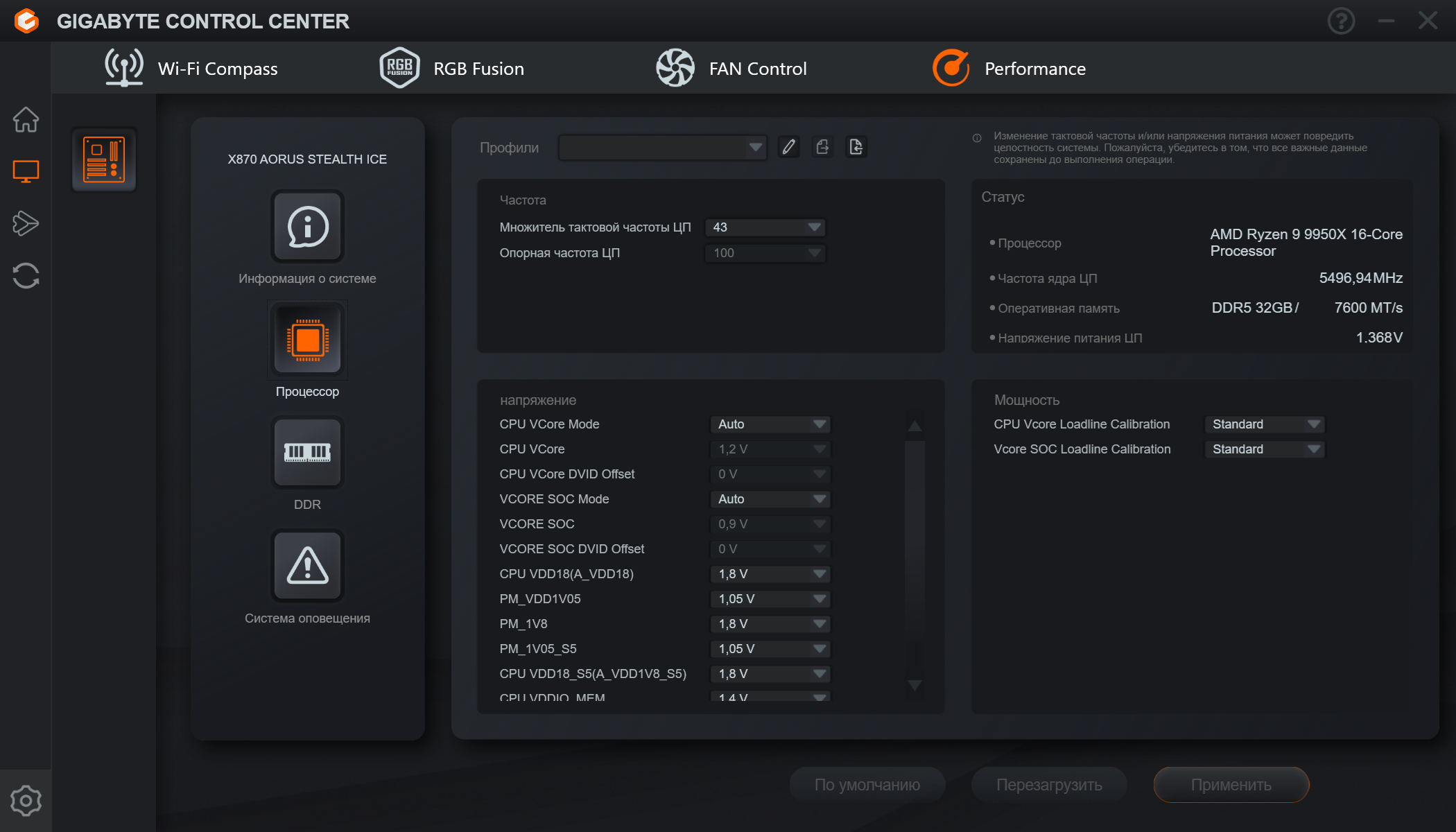 Разумеется, Gigabyte X870 Aorus Stealth Ice предлагает некоторые возможности для любителей разгона.