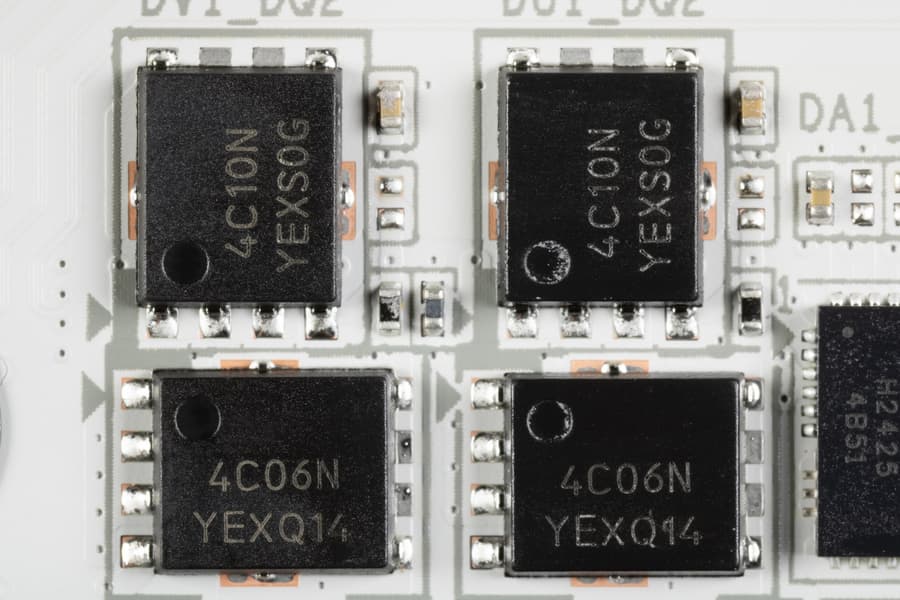 Каждая фаза VCore и SoC имеет по транзисторной сборке PMC41410 от Infineon (ex-IOR) (до 80А).