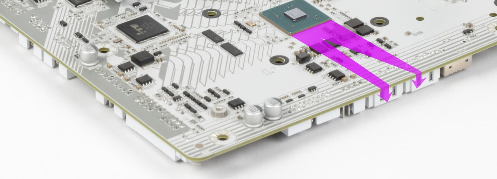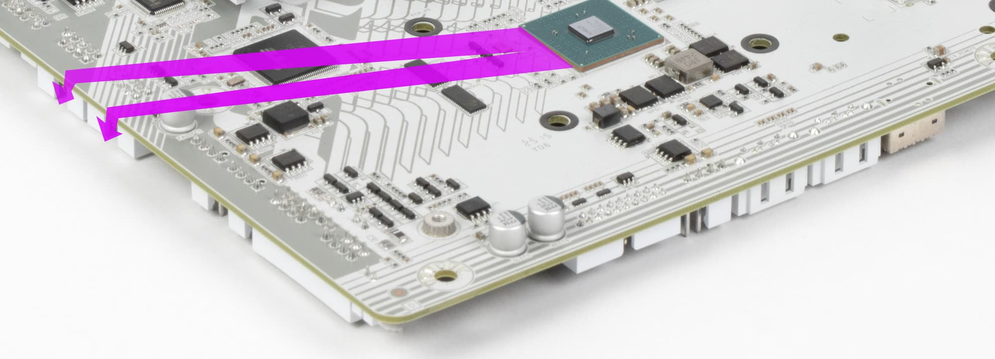 У всех модулей M.2, как я уже выше отмечал, есть свои радиаторы с термоинтерфейсом. У верхнего — свой отдельный радиатор, у трех остальных — общий. Следует особо отметить, что слот M2B_CPU оснащен термопрокладками с обеих сторон. То есть под слотом также есть плоский тонкий радиатор.