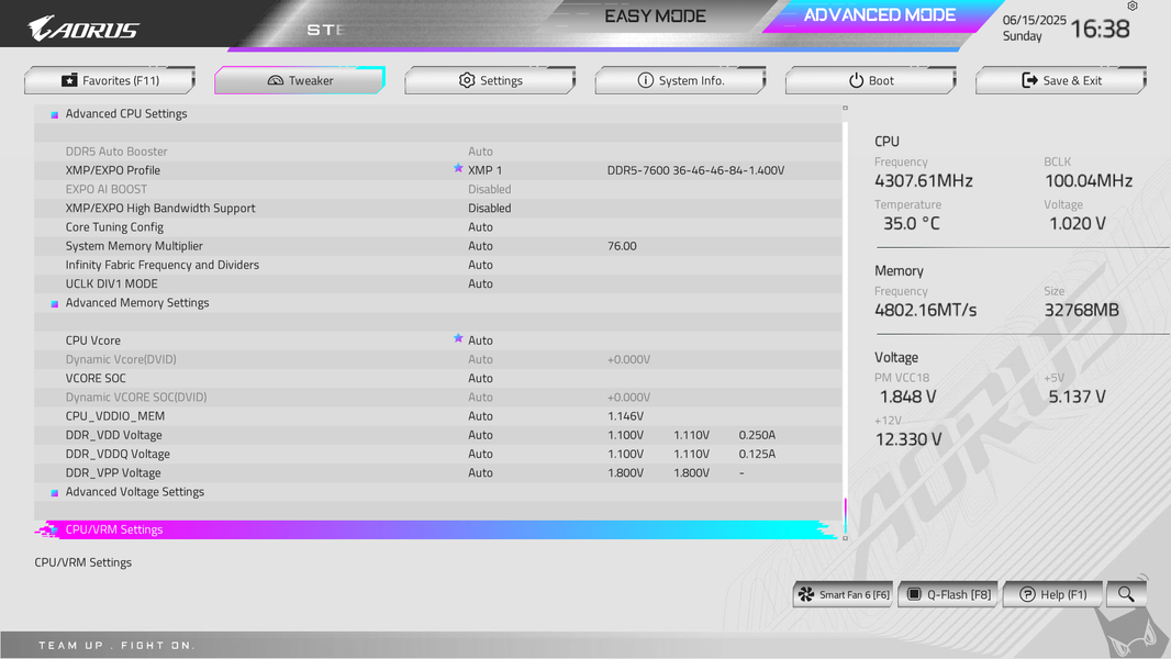 Хорошо известно, что современные технологии авторазгона базируют свои лимиты подъема частот на информации о системе питания на той или иной матплате, возможностях чипсета и т.д. (контроллеры – цифровые, в UEFI вся информация имеется). Следует отметить, что у данной плата хорошо реализован контроль за частотой IF (Infinity Fabric) (разумеется, если она выставлена в режиме Auto), и множитель для частоты памяти автоматически подобран.