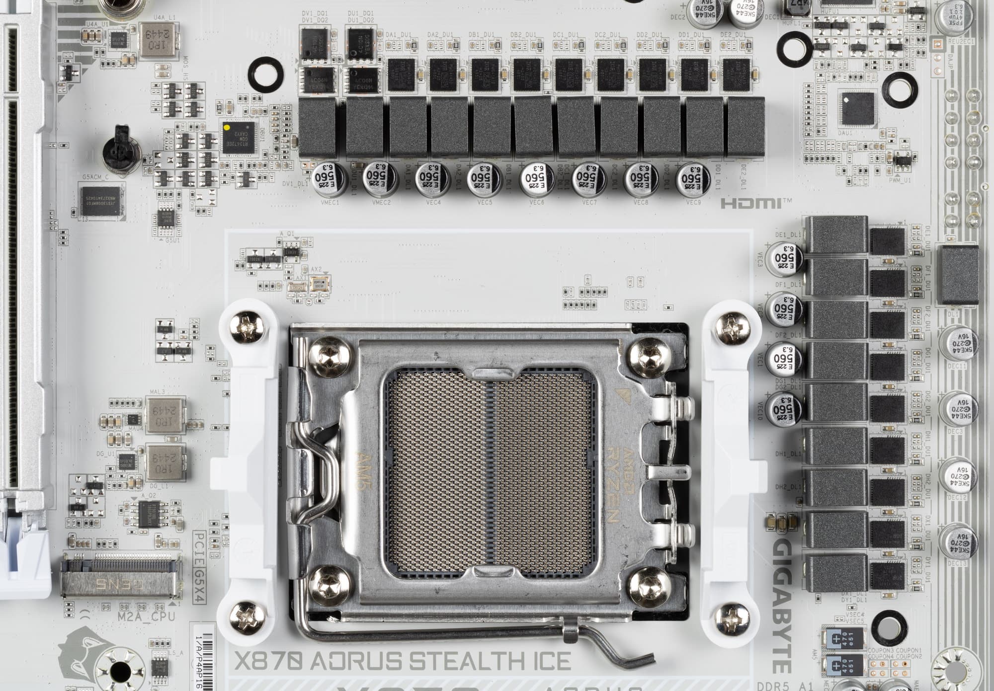 Gigabyte X870 Aorus Stealth Ice поддерживает процессоры AMD поколения 7000/8000/9000, выполненные под разъем (сокет) AM5.