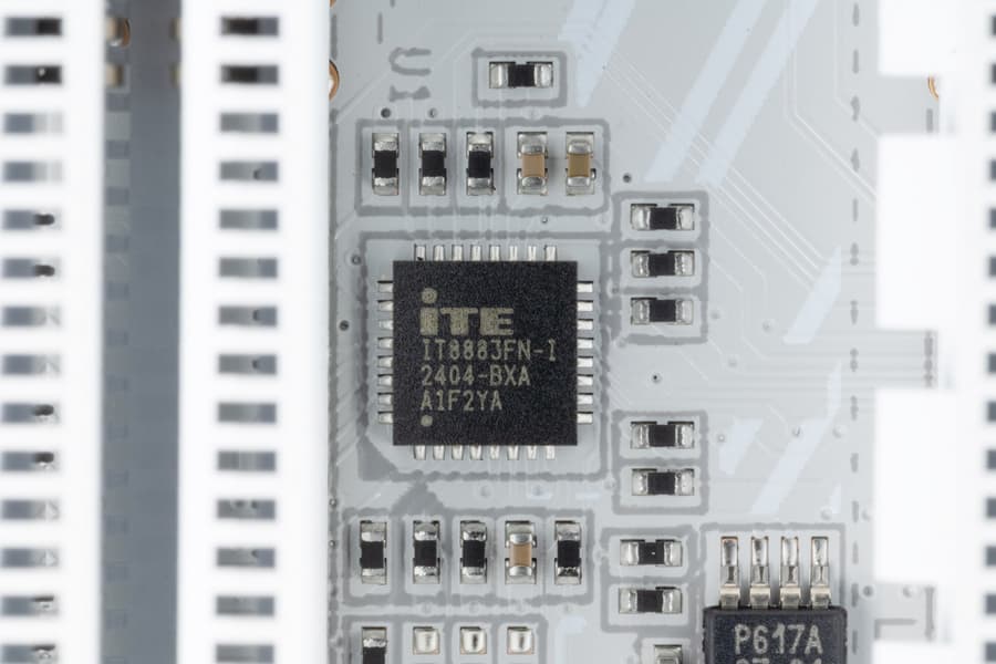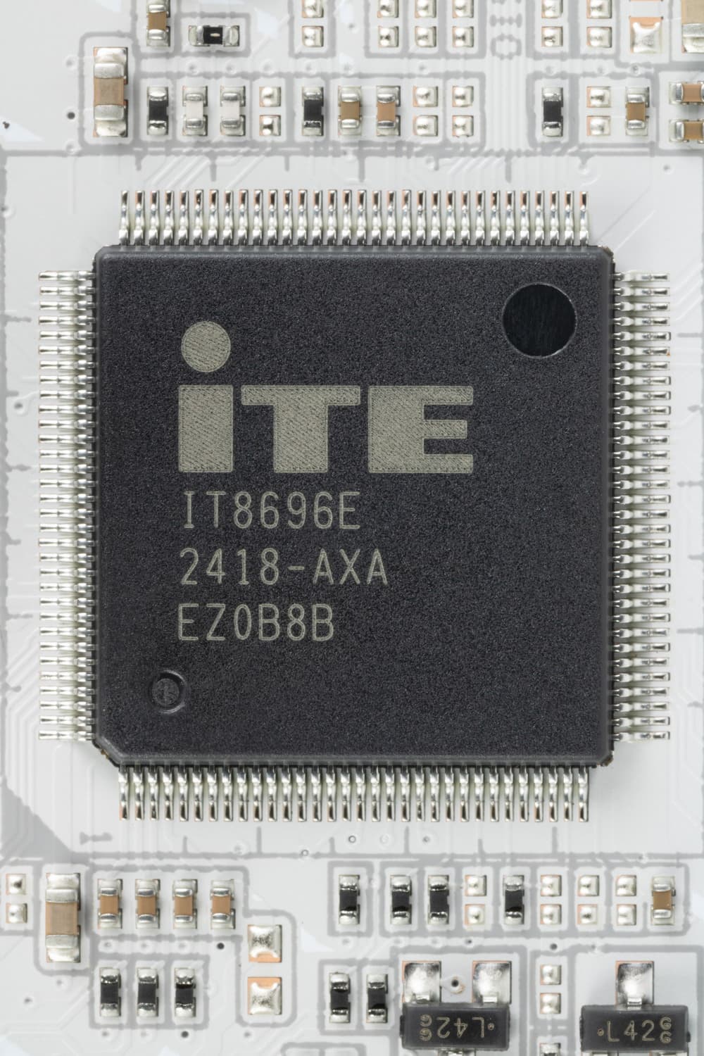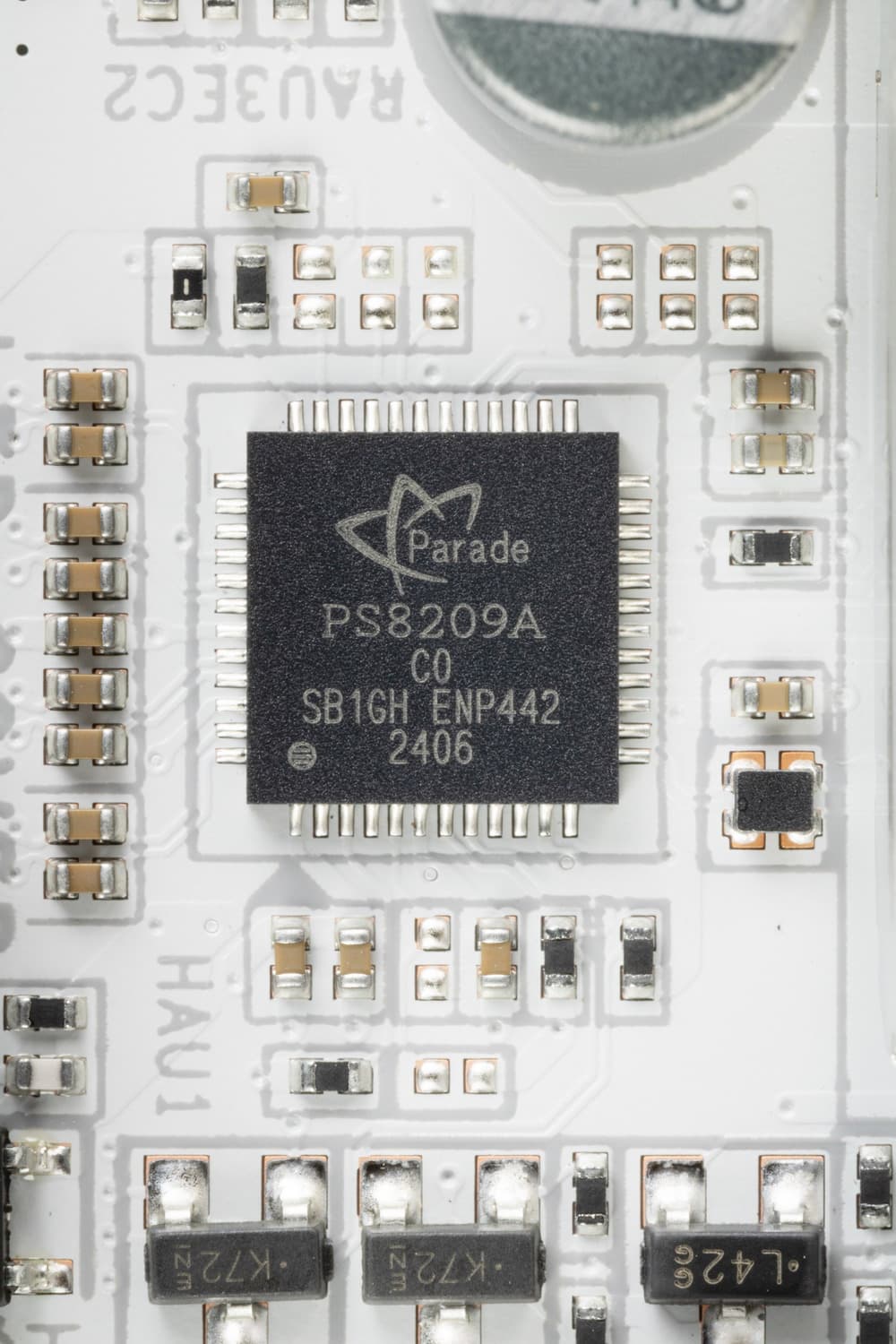 А порт USB 3.2 Gen2x2 в виде внутреннего Type-C отдельным контроллером от Realtek, являющимся по сути усилителем питания, дающий вольтаж, способный обеспечить быструю зарядку мобильных гаджетов через него.