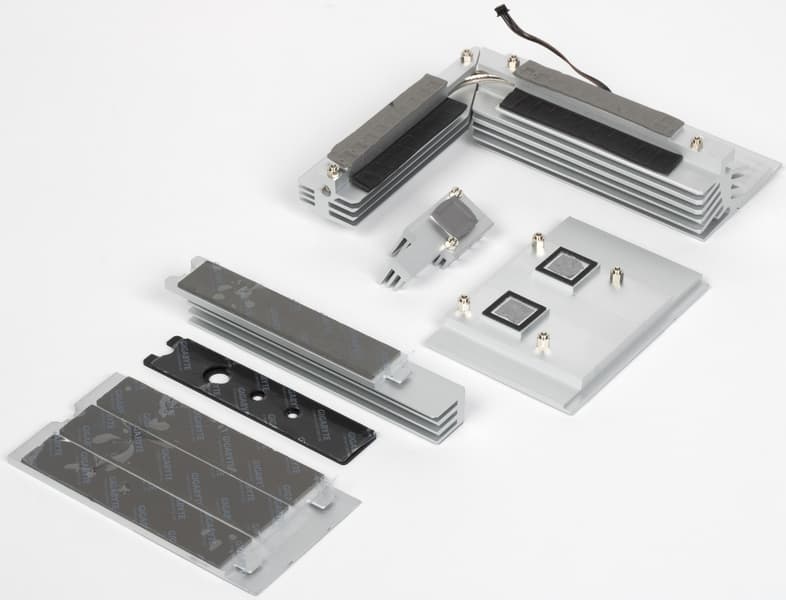 То есть следует отметить, что охлаждение системного чипсета (2 микросхемы) отдельно от охлаждения модулей в слотах M.2.