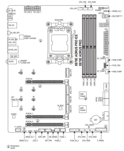 - 1 порт USB 3.2 Gen2x2: реализован с помощью X870E и представлен внутренним портом Type-C (для подключения к соответствующему разъему на передней панели корпуса);