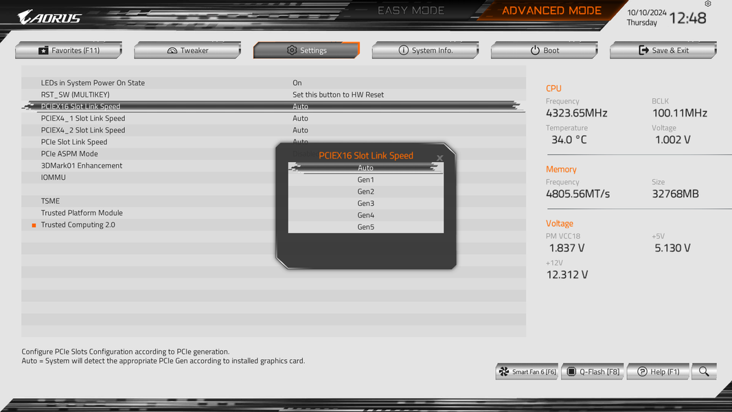 - Слот PCIe x16_1 имеет 8 линий PCIe 5.0, слоты M2A_CPU и M2B_CPU имеют по 4 линии PCIe 5.0.