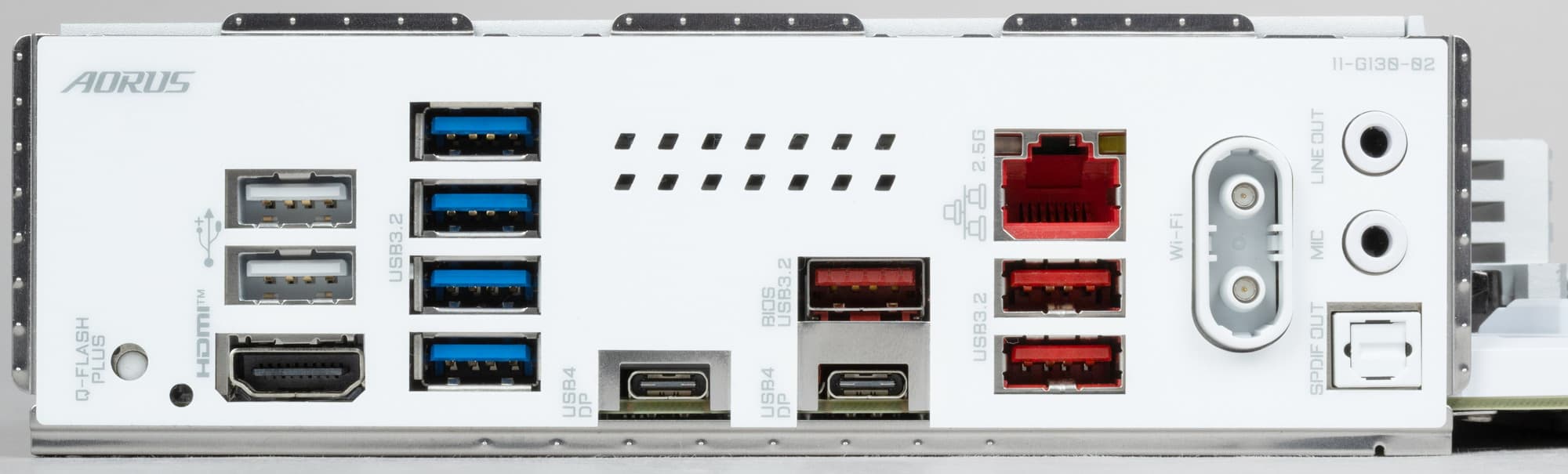 | Разъемы на задней панели | 2 × USB4 (Type-C) 3 × USB 3.2 Gen2 (Type-A) 4 × USB 3.2 Gen1 (Type-A) 2 × USB 2.0 (Type-A) 1 × RJ-45 2 аудиоразъема типа миниджек 1 × оптический S/PDIF (выход) 1 × HDMI (выход) 2 антенных разъема кнопка перепрошивки BIOS — Q-Flash Plus |