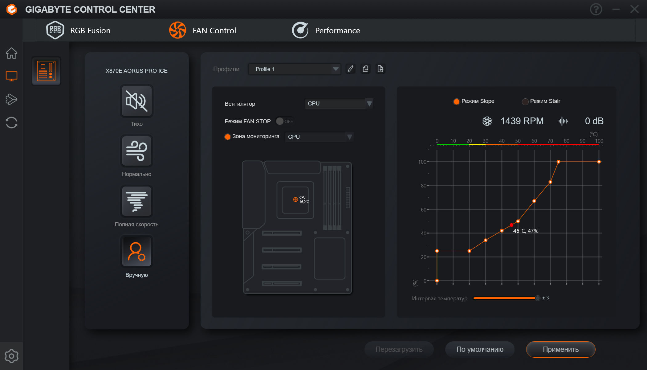 Запускаем все в режиме по умолчанию. Затем нагружаем тестами от OCCT.